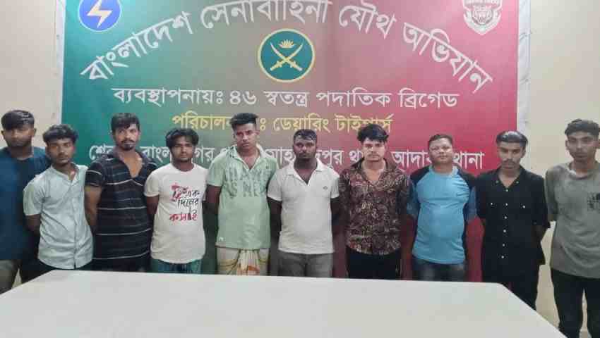 বুধবার (২৯ অক্টোবর) রাত ৯ টা থেকে ১১টা পর্যন্ত অভিযান পরিচালনা করে তাদের আটক করা হয়। আটককৃতরা হলেন-গ্রুপের অন্যতম নেতা নায়েম (২২),শপন (৩০), আল আমিন (২২), শাকিল (২৫), মুনতাজ (২৫), মুক্তার (২৩), রিয়াজ (২১), ইমন (২০), লিমন (২০) ও আকতার (২০)।