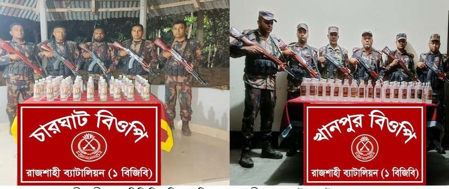 সময় চারঘাট থানার ঝিকরা এলাকার একটি আমবাগানে তল্লাশি চালিয়ে আরও ৫০ বোতল ভারতীয় মদ উদ্ধার করা হয়।