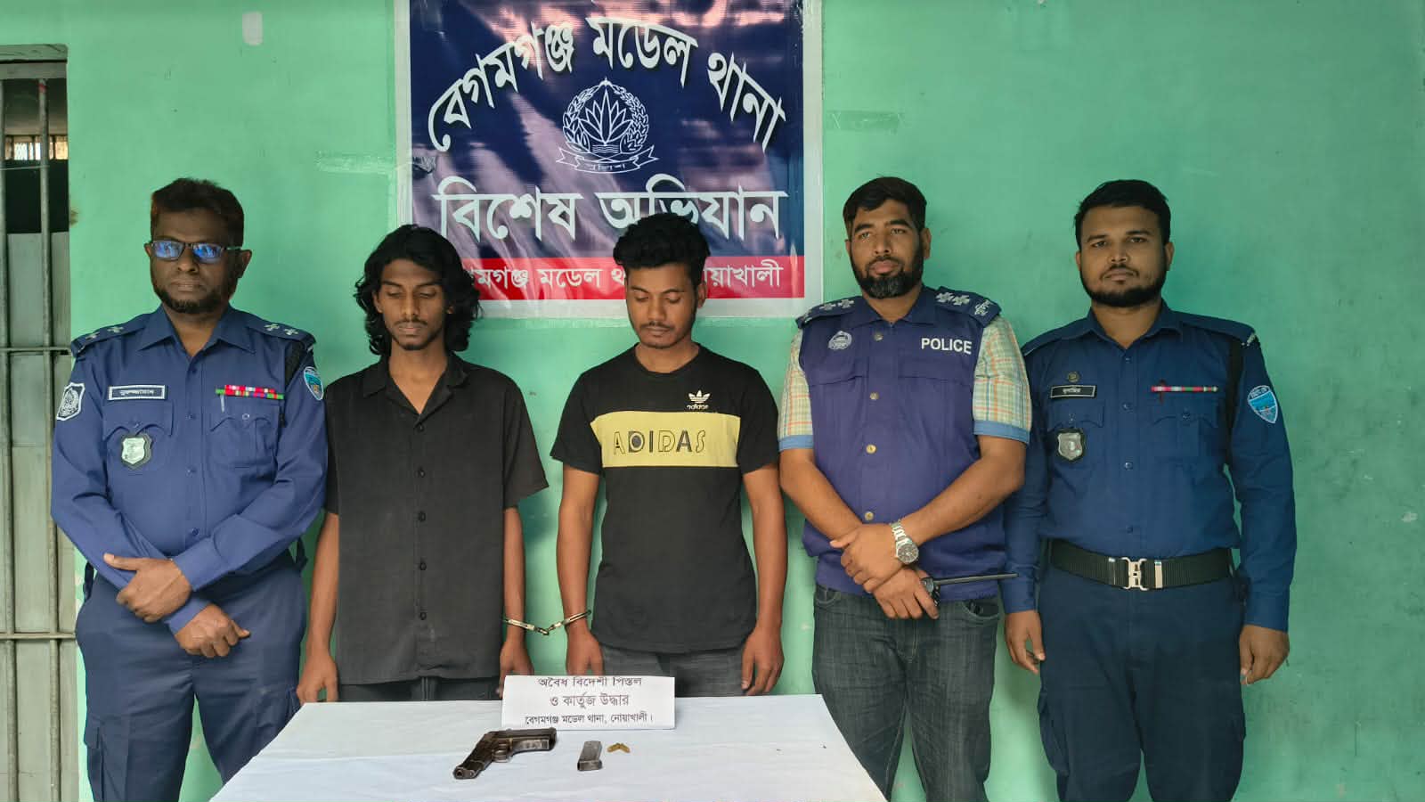 নোয়াখালীর বেগমগঞ্জ উপজেলা থেকে একটি বিদেশি পিস্তল ও দুই রাউন্ড কার্তুজসহ দুই অস্ত্রধারীকে গ্রেফতার করেছে পুলিশ।