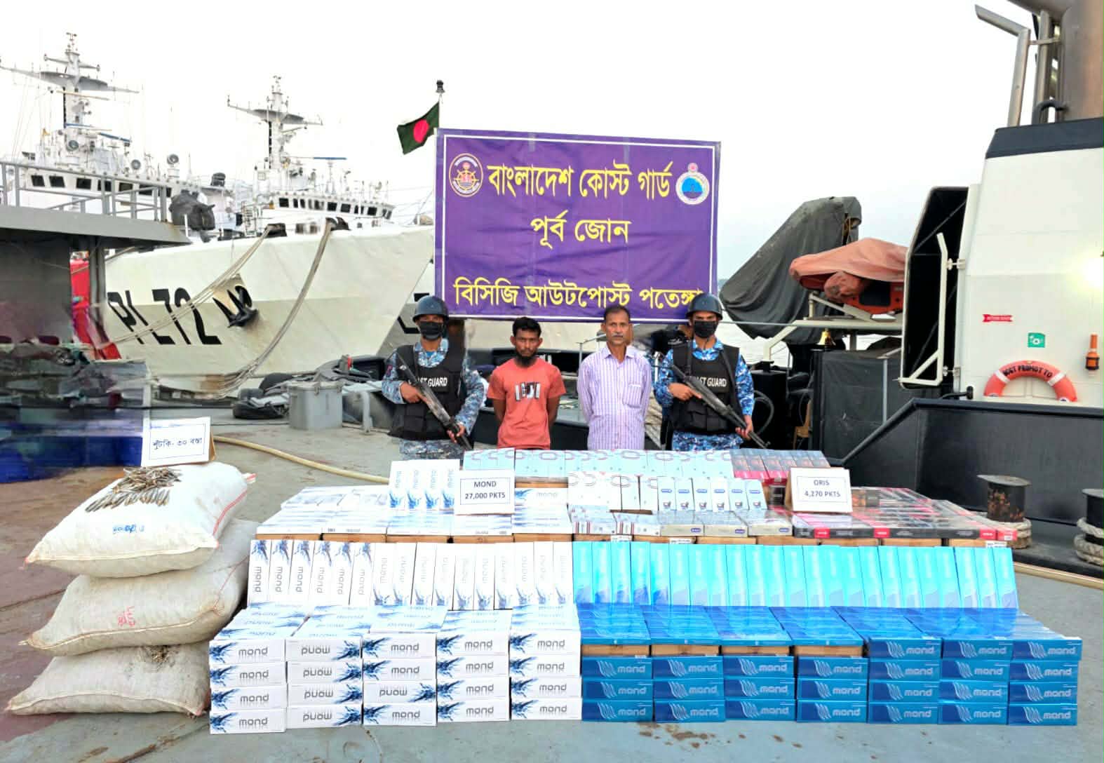 এ সময় পাচার কাজে ব্যবহৃত একটি কার্গো বোটসহ দুইজনকে আটক করা হয়। সোমবার (৯ মার্চ ) দুপুরে এ তথ্য জানান বাংলাদেশ কোস্ট গার্ডের মিডিয়া কর্মকর্তা লেফটেন্যান্ট কমান্ডার সাব্বির আলম সুজন। তিনি বলেন, গোপন সংবাদের ভিত্তিতে জানা যায় কর্ণফুলি নদী দিয়ে শুল্ক-কর ফাঁকি দিয়ে বিপুল পরিমাণ বিদেশি সিগারেট চট্টগ্রামে প্রবেশ করবে।