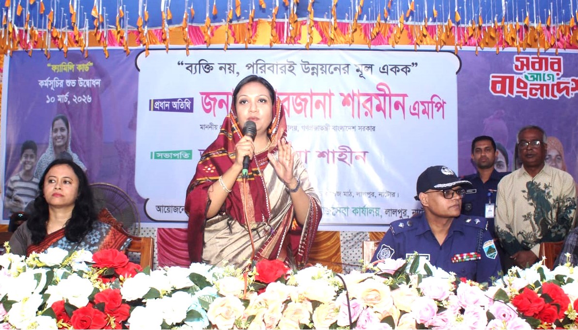 মঙ্গলবার (১০ মার্চ) বিকেলে লালপুর উপজেলার গৌরীপুর স্কুল অ্যান্ড কলেজ মাঠে আয়োজিত ফ্যামিলি কার্ড বিতরণ কার্যক্রমের প্রধান অতিথির বক্তব্যে তিনি এসব কথা বলেন। প্রতিমন্ত্রী বলেন, আগামী মাসে এই ৩৭ হাজারসহ আরো ৫০ হাজার কার্ডের টাকা পৌঁছে যাবে। ৫ সদস্যের পরিবারের একজন নারী সদস্য হিসেবে কর্তী এই কার্ড পাবেন। নাটোর, রাজশাহীসহ সকল এলাকায় ক্রমান্বয়ে এই কার্ড পৌঁছে যাবে। বাংলাদেশের অর্থনৈতিকে চালিত করে রাখতে সারা বাংলাদেশে যখন একযোগে ফ্যামিলি কার্ডের কাজ শুরু হবে তখন এটি অত্যন্ত গুরুত্বপূর্ণ ভূমিকা রাখবে।