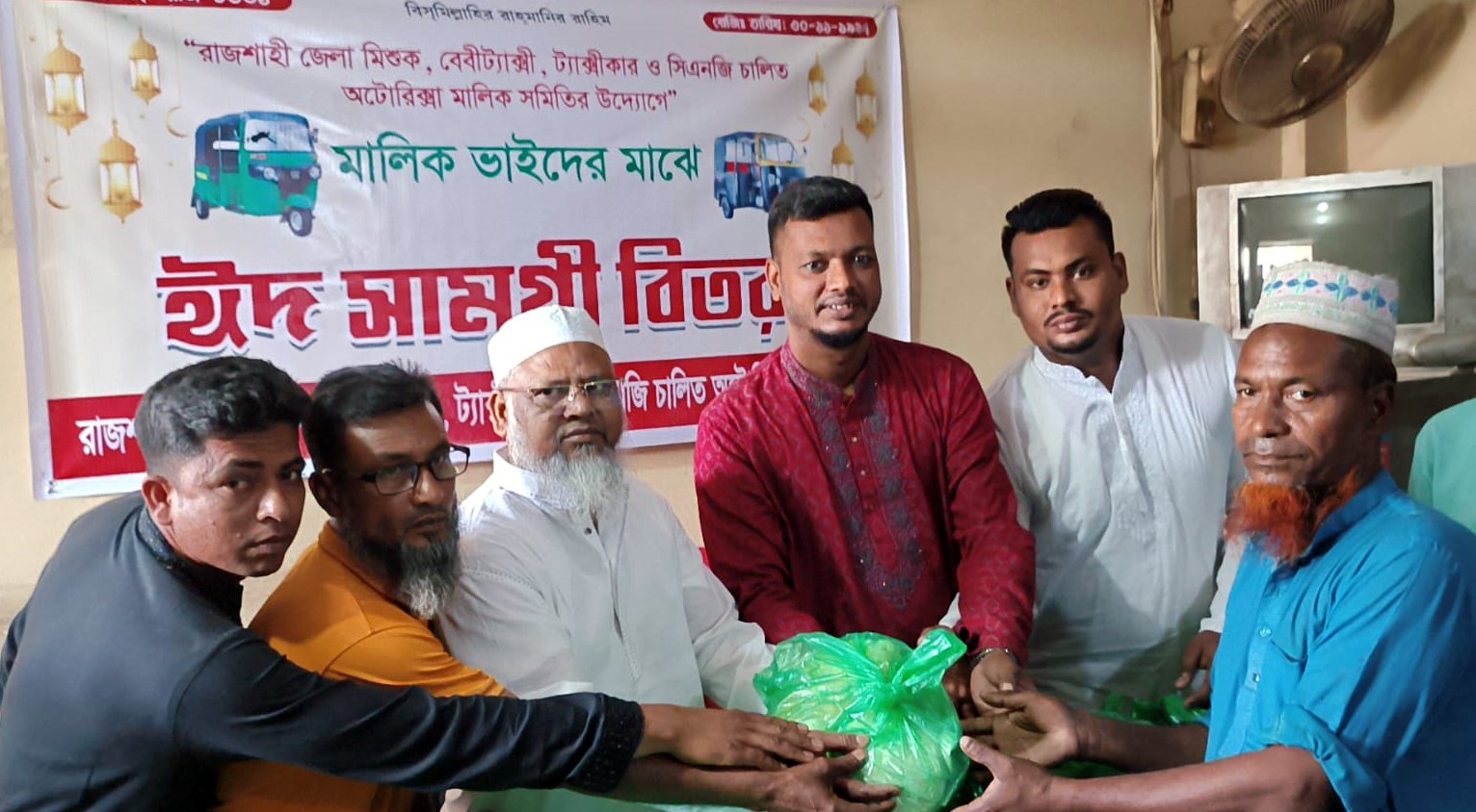 আসন্ন পবিত্র ঈদ উপলক্ষে রাজশাহী জেলার মিশুক, বেবি ট্যাক্সি, ট্যাক্সিক্যাব ও সিএনজি চালিত অটোরিকশা মালিক সমিতির উদ্যোগে ১৫০০ জন মালিকের মাঝে ঈদ সামগ্রী উপহার দেওয়া হয়েছে।
