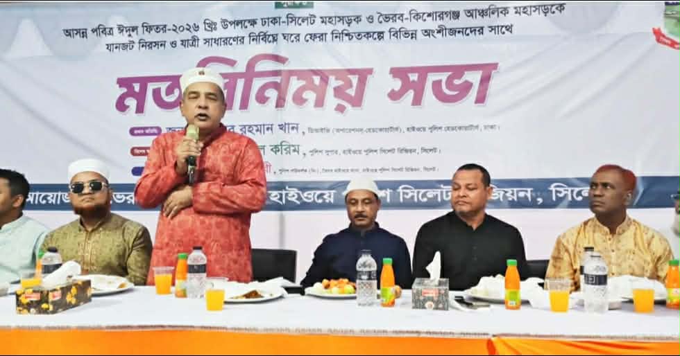 ঢাকা–সিলেট মহাসড়ক ও কিশোরগঞ্জ আঞ্চলিক সড়কে যানজট নিরসন এবং আসন্ন পবিত্র ঈদুল ফিতর উপলক্ষে যাত্রীদের নির্বিঘ্নে চলাচল নিশ্চিত করার লক্ষ্যে ভৈরব হাইওয়ে পুলিশের আয়োজনে থানা প্রাঙ্গণে এক মতবিনিময় সভাও ইফতার মাহফিল অনুষ্ঠিত হয়েছে।