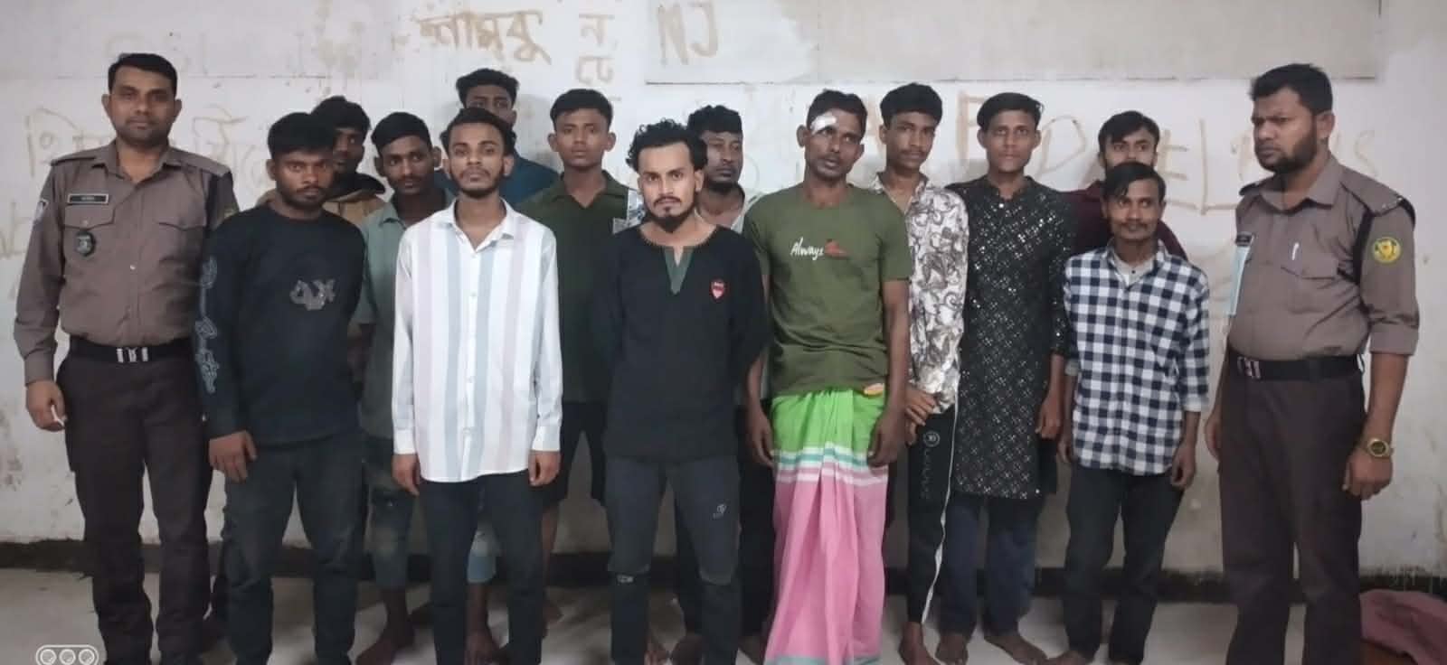 গ্রেফতারকৃতরা হলো-মো. সুজন (২৫), হোসেন আলী (২৮), মো. ইমন (২২), মো. শিপন (২০), মো. সোহেল মোল্লা (৩০), সোহেল রানা (২২), রমজান আলী (২২), মারুফ হোসেন আরজু (২৭), ইব্রাহিম মাতব্বর (২৮),