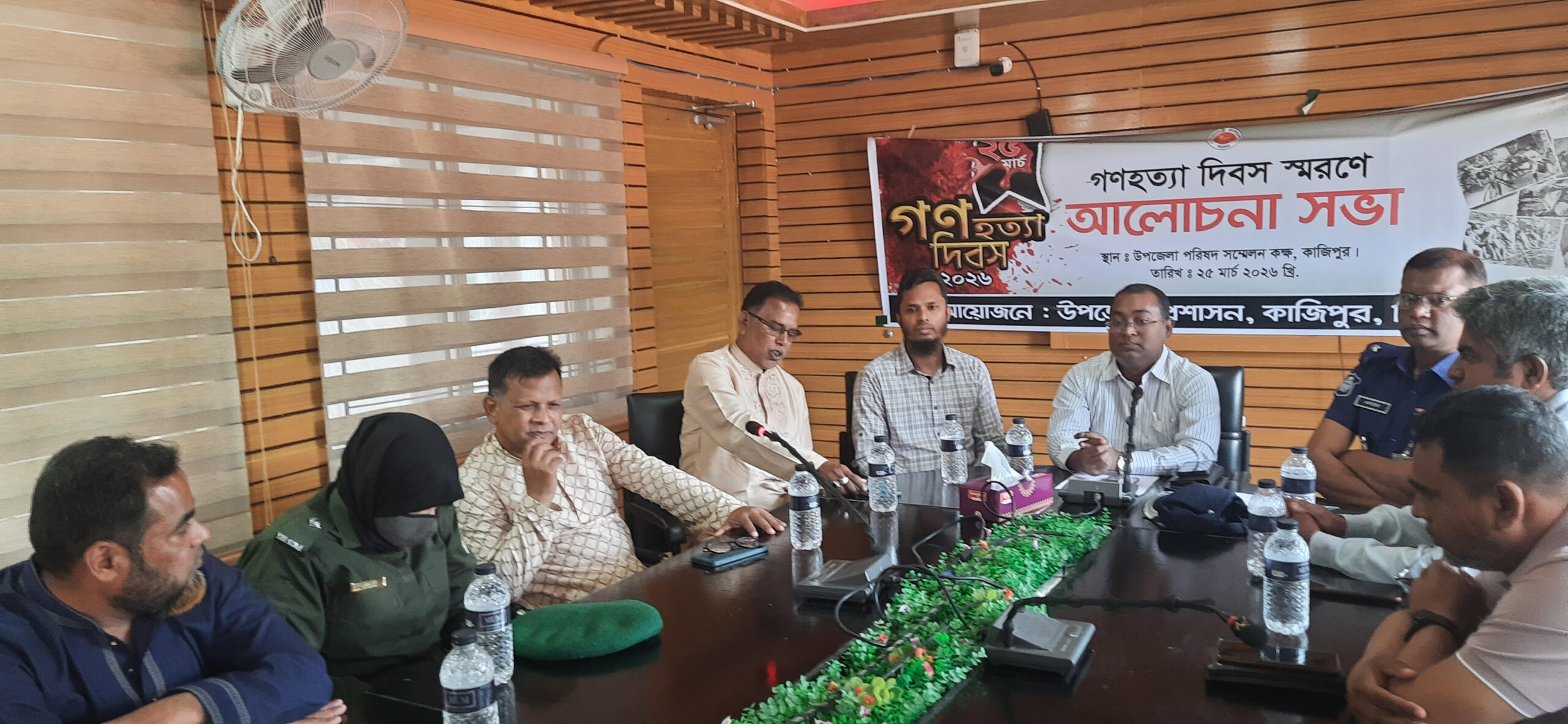 ২৫ ই মার্চ বৃহস্পতিবার কাজিপুর উপজেলা প্রশাসনের আয়োজনে উপজেলা নির্বাহী অফিসার মোস্তাফিজুর রহমানের সভাপতিত্বে আলোচনা সভা অনুষ্ঠিত হয়।