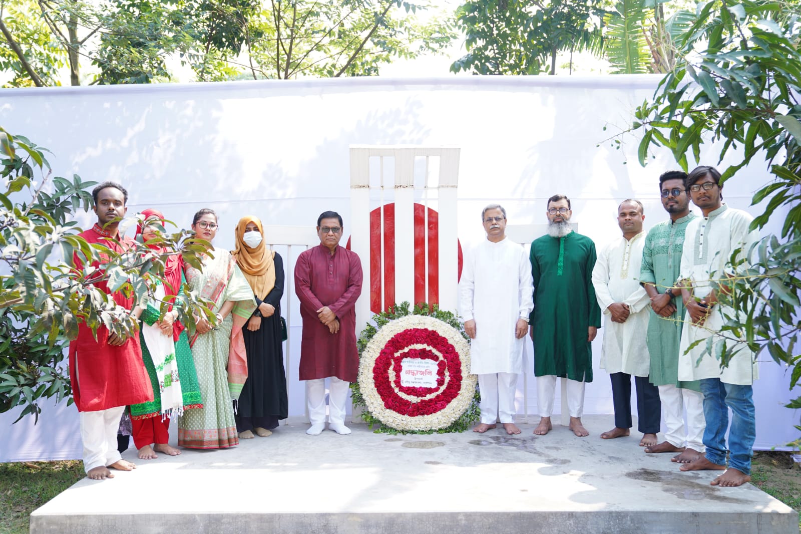 এরপর ১৯৭১ সালের মহান মুক্তিযুদ্ধে আত্মোৎসর্গকারী বীর শহিদদের স্মৃতির প্রতি গভীর শ্রদ্ধা জানিয়ে একই স্থানে স্থাপিত শহিদ মিনারে পুষ্পস্তবক অর্পণ করা হয়। এ সময় পুষ্পস্তবক অর্পণ করেন বিশ্ববিদ্যালয়ের ভাইস-চ্যান্সেলর প্রফেসর ড. এস. এম. হাসান তালুকদার, প্রো-ভাইস চ্যান্সেলর প্রফেসর ড. সুমন কান্তি বড়ুয়া এবং ট্রেজারার প্রফেসর ড. ফিরোজ আহমদ।
