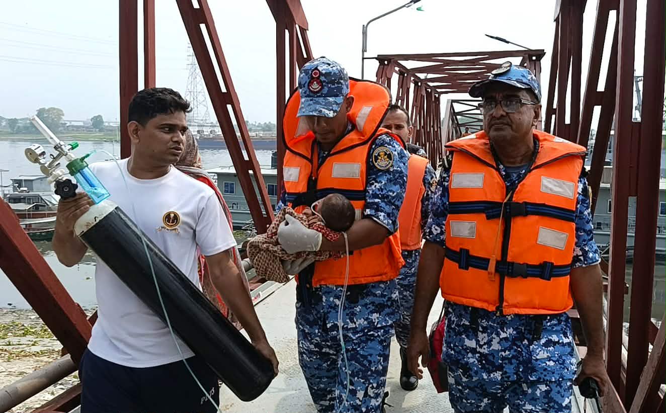 মুন্সিগঞ্জে যাত্রীবাহী একটি লঞ্চে অসুস্থ নবজাতক শিশুকে জরুরি চিকিৎসা সহায়তা দিয়ে জীবনরক্ষায় এগিয়ে এসেছে বাংলাদেশ কোস্ট গার্ড।