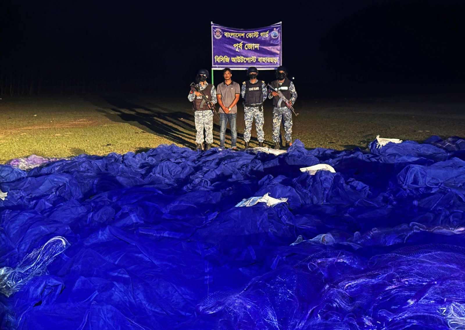 কক্সবাজারের টেকনাফ উপজেলার বাহারছড়ায় কোস্ট গার্ডের যৌথ অভিযানে প্রায় ১১৮ কোটি ১০ লাখ টাকা মূল্যের বিপুল পরিমাণ অবৈধ জাল জব্দ করা হয়েছে।