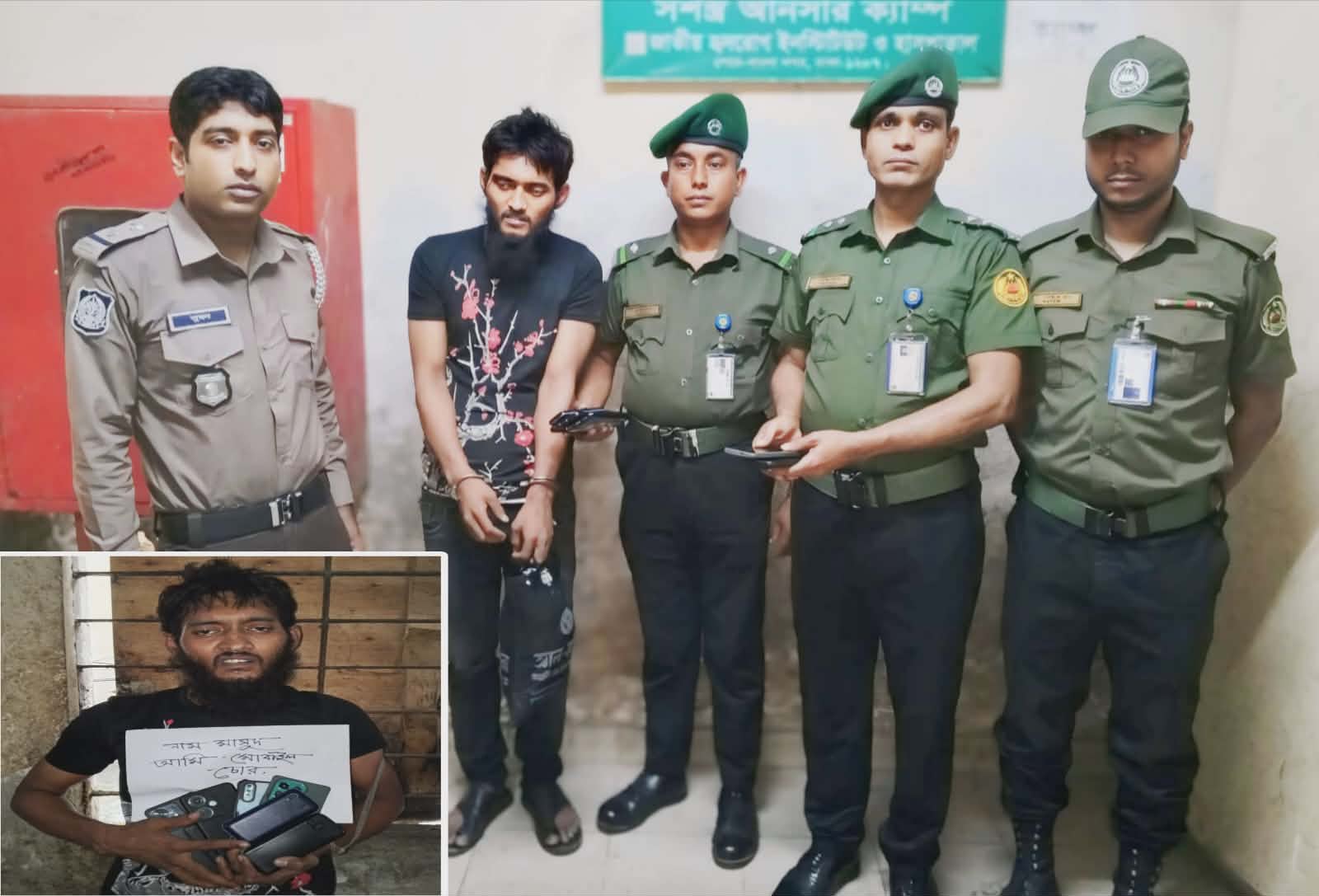 রবিবার ভোর আনুমানিক ৪টার দিকে হাসপাতালের দক্ষিণ ভবনের পঞ্চম তলায় নিয়মিত টহল ডিউটির সময় আনসার সদস্যরা এক ব্যক্তির সন্দেহজনক গতিবিধি লক্ষ্য করেন। পরে তাকে আটক করে তল্লাশি চালালে তার কাছ থেকে চারটি বিভিন্ন ব্র্যান্ডের স্মার্টফোন, দুটি বাটন ফোন এবং নগদ এক হাজার ৫০০ টাকা উদ্ধার করা হয়।