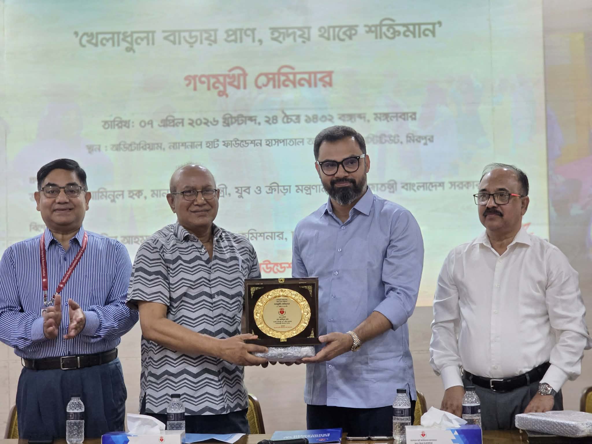 'খেলাধুলা বাড়ায় প্রাণ, হৃদয় থাকে শক্তিমান স্লোগান' নিয়ে বিশ্ব স্বাস্থ্য দিবস উপলক্ষে আজ মঙ্গলবার (৭ এপ্রিল) মিরপুরস্থ ন্যাশনাল হার্ট ফাউন্ডেশন কর্তৃক আয়োজিত এক গণমুখী সেমিনারে প্রধান অতিথির বক্তব্যে প্রতিমন্ত্রী এ কথা বলেন।