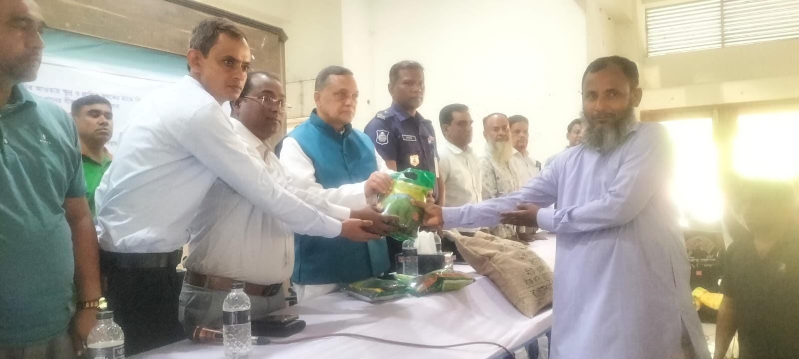 এ সময় ৬২০ জন কৃষক কে জনপ্রতি ১ কেজি পাটের বীজ , ডিএপি৫ কেজি ,এমওপি ৫ কেজি, ২০০ জন কৃষক কে জনপ্রতি তিল বীজ ১ কেজি ,১০ কেজি ডিএপি,৫ কেজি এমওপি এবং ২৫০ জন কৃষক কে জনপ্রতি আউশ ধানের বীজ ৫ কেজি , ১০ ডিএপি কেজি,১০কেজি এমওপি দেওয়া হয়েছে।