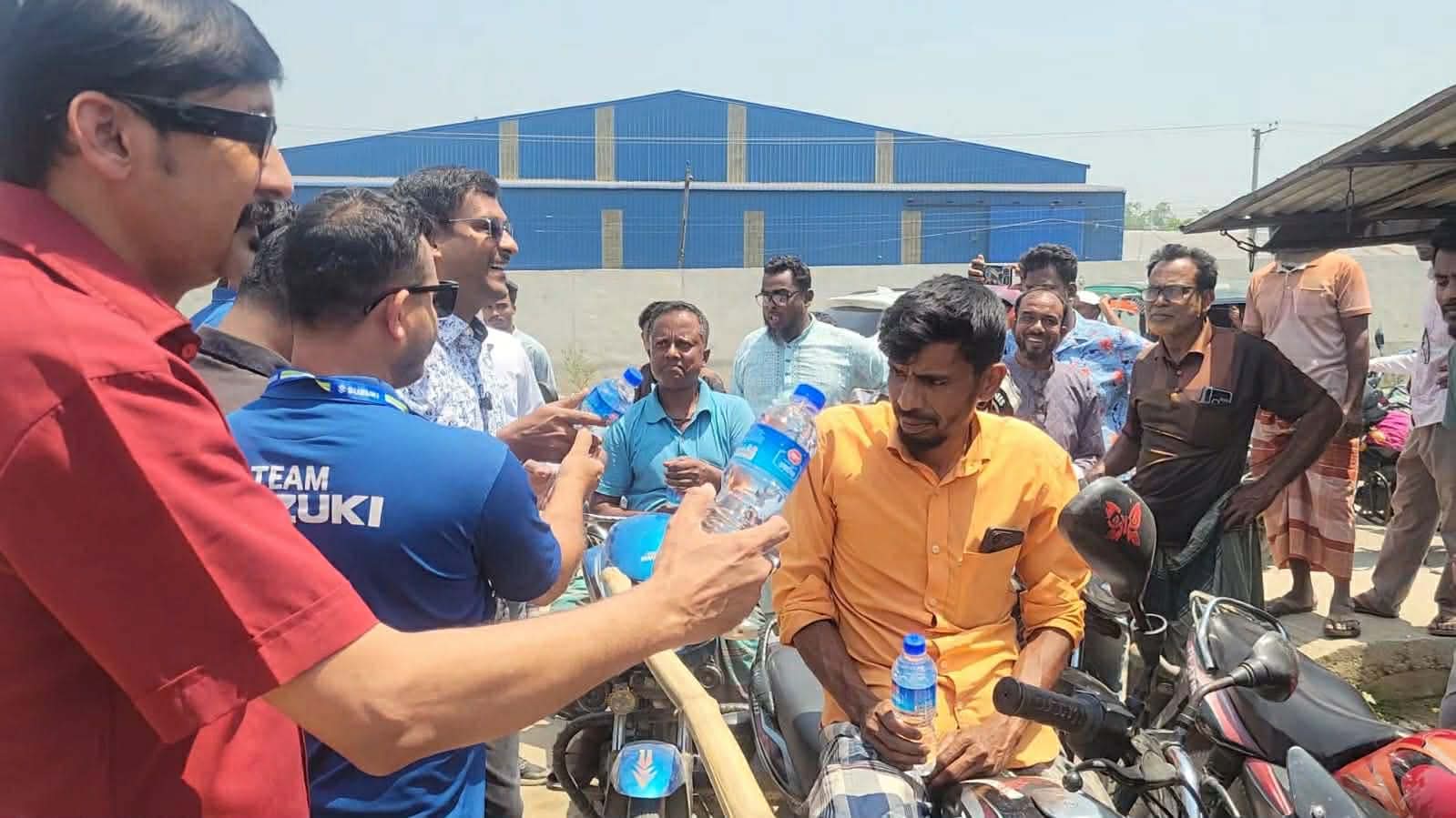 এ সময় তীব্র রোদ ও গরমে ডিহাইড্রেশনের ঝুঁকি কমাতে মানবিক দায়বদ্ধতা থেকে এই উদ্যোগ নেওয়া হয়। লাইন দাঁড়িয়ে থাকা কয়েকশ বাইকারের হাতে হাফ লিটারের পানির বোতল তুলে দেন সুজুকি বাংলাদেশের বগুড়া টেরিটরি সার্ভিস ম্যানেজার রাকেশ চন্দ্র ঘোষ এবং আল মদিনা বাইক সেন্টারের স্বত্বাধিকারী কে এম নাছের, ডা. স্বপন।