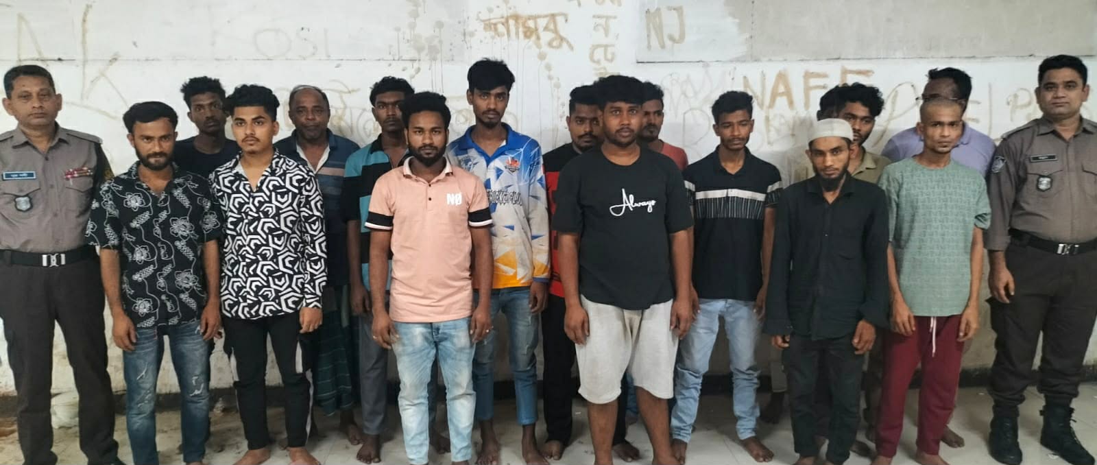 মো. সাগর (১৯), মো. রতন (২১), মো. পলাশ (২১), মো. জুয়েল (২৩), মো. মোরছালিন (২৪), মো. ইমন মিয়া (২৯) ও মো. ফজলে রাব্বি ওলাদেন (২৪)।