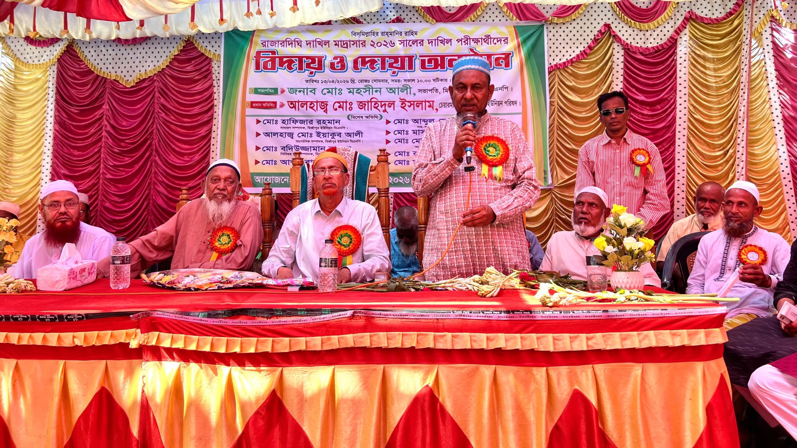অত্র মাদ্রাসার শিক্ষক সুপার ওমর ফারুক ও শিক্ষক মোস্তাফিজুর রহমানের সঞ্চালনায় অনুষ্ঠানে বিশেষ অতিথি হিসেবে উপস্থিত ছিলেন, মাদ্রাসার প্রতিষ্ঠাতা জসিম উদ্দিন, শেরপুর উপজেলা বিএনপি সহ-সভাপতি ও সাবেক ইউনিয়ন চেয়ারম্যান আব্দুল মোনায়েম খান, মির্জাপুর ইউনিয়ন বিএনপি সাধারণ সম্পাদক হাফিজুর রহমান, সাংগঠনিক সম্পাদক আলহাজ্ব মোঃ ইয়াকুব আলী, সিনিয়র যুগ্ম সম্পাদক বদিউজ্জামান বাদশা, যুগ্ম সম্পাদক আব্দুর রাজ্জাক তালুকদার, সিনিয়র সহ-সভাপতি মাসুদ রানা, যুগ্ম সম্পাদক রইছ উদ্দিন, কোষাধ্যক্ষ মজিবর রহমান (মজনু) বিশিষ্ট্য সমাজ সেবক হাবিবুর রহমান, রুহুল আমিন, শিক্ষক কাউছার আলী, মোমিনুল ইসলাম, নূর মোহাম্মদ প্রমুখ। অত্র মাদ্রাসার বিদায়ী শিক্ষার্থীদের মধ্যে মেধা ও মাদ্রাসায় বেশিদিন উপস্থিতি হওয়ায় সাদিয়া, আতিয়া, রিমুকে পুরস্কার প্রদান করা হয়। অনুষ্ঠানে মাদ্রাসার শিক্ষকবৃন্দ বিদায়ী শিক্ষার্থীদের উদ্দেশ্যে দিকনির্দেশনামূলক বক্তব্য প্রদান করেন। ২০২৬ সালের দাখিল পরীক্ষার্থীবৃন্দের আয়োজনে আয়োজিত এই অনুষ্ঠানটি শেষে শিক্ষার্থীদের সার্বিক সাফল্য ও কল্যাণ কামনায় বিশেষ দোয়া ও মোনাজাত পরিচালনা করা হয়। মাদ্রাসার ছাত্র-ছাত্রী, অভিভাবক এবং স্থানীয় গণ্যমান্য ব্যক্তিবর্গ এই দোয়া মাহফিলে উপস্থিত ছিলেন।
