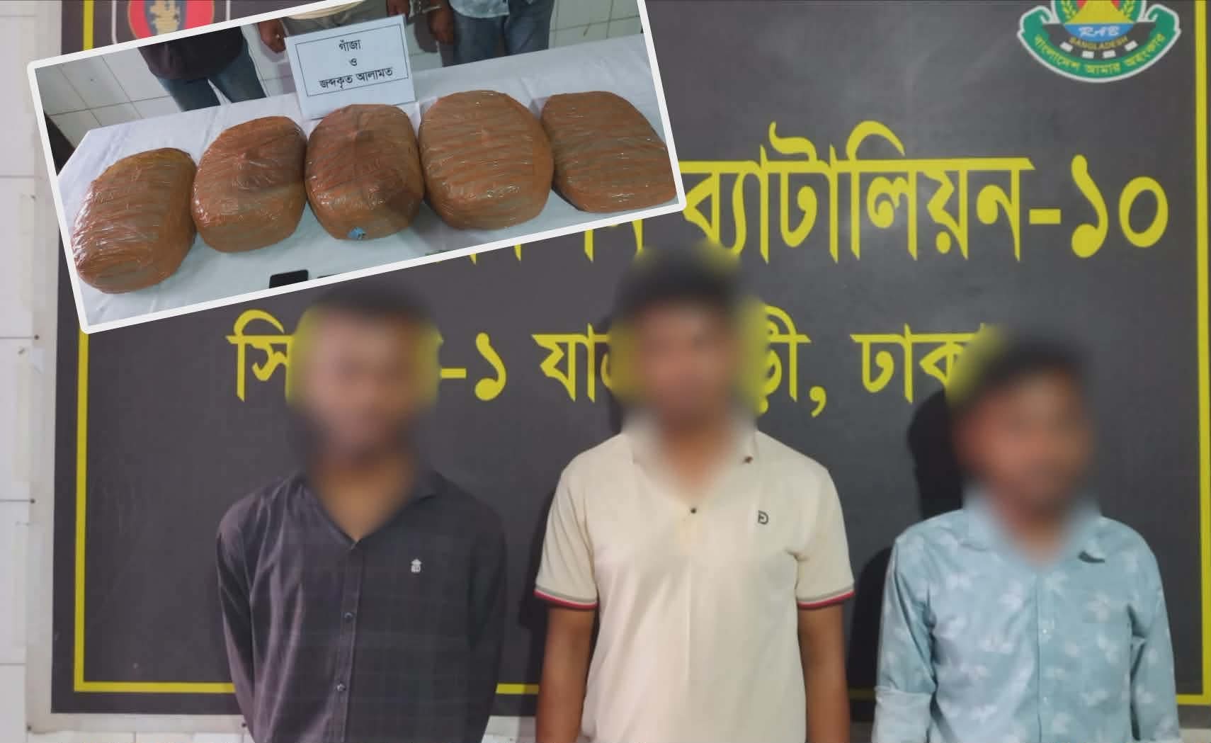 রাজধানীর যাত্রাবাড়ী এলাকায় অভিযান চালিয়ে ৯ কেজি গাঁজাসহ তিন মাদক কারবারিকে গ্রেফতার করেছে র্যাব-১০।