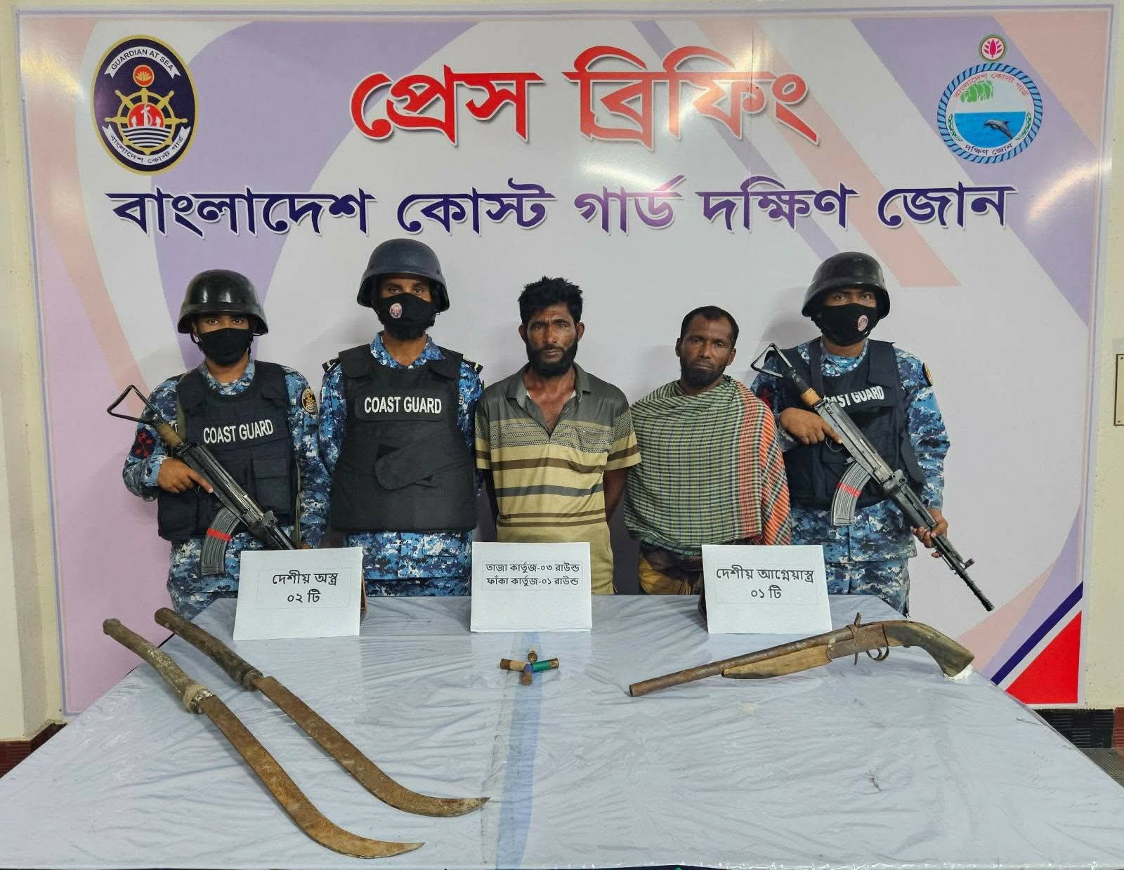 ভোলার দৌলতখান উপজেলায় অভিযান চালিয়ে অস্ত্র ও গোলাবারুদসহ দুই ডাকাতকে আটক করেছে বাংলাদেশ কোস্ট গার্ড।
