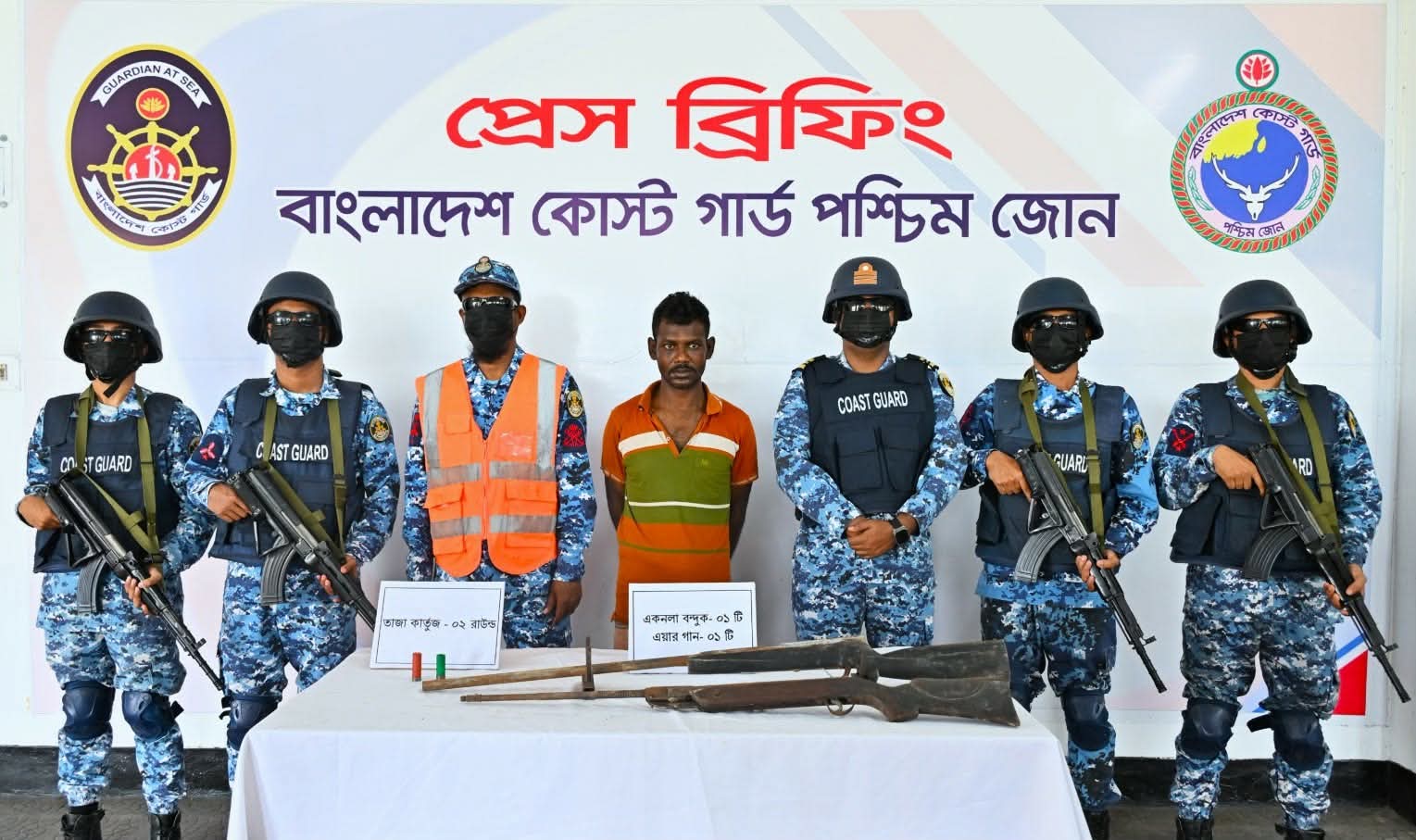 পরবর্তীতে আটক ব্যক্তির দেওয়া তথ্য অনুযায়ী, মঙ্গলবার (২১ এপ্রিল) মধ্যরাত ২টার দিকে মোংলা থানার সুন্দরবনের নন্দবালা খাল সংলগ্ন এলাকায় অভিযান চালিয়ে একটি একনলা বন্দুক, একটি এয়ার গান ও দুই রাউন্ড তাজা কার্তুজ উদ্ধার করা হয়।