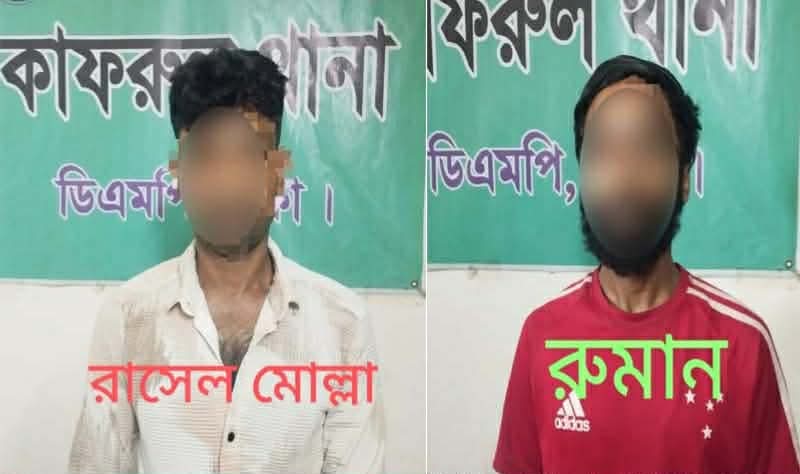 মঙ্গলবার (২১ এপ্রিল) ডিএমপির মিডিয়া অ্যান্ড পাবলিক রিলেশন্স বিভাগের উপ-পুলিশ কমিশনার এন এম নাসিরুদ্দিন এ তথ্য নিশ্চিত করেন। গ্রেফতাররা হলেন- রাসেল মোল্লা (৩৫) ও রুমান তালুকদার (২৬)।