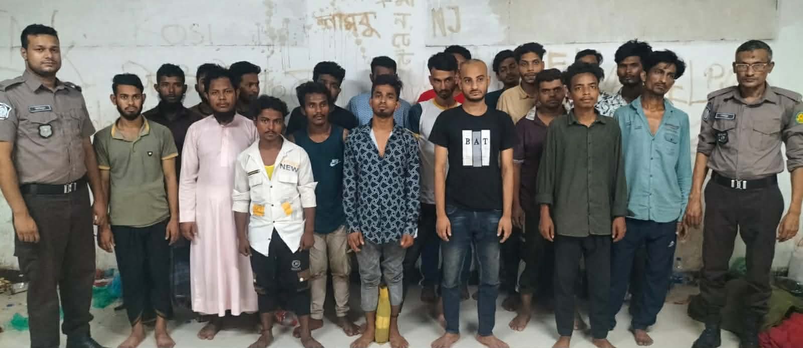 গ্রেফতারকৃতরা হলো,ফজলে রাব্বি (২১),ইব্রাহিম (২২),শাকিল (২০),আলমগীর (৩৮),মহসিন (২৯),ইয়াসিন (২০),রমজান (১৯),খাইরুল (২৪),মনিরুল আলম নিজু (২৫),সাব্বির হোসেন (১৯), মাসুম (২২),রুবেল (২৯),সঞ্জয় চন্দ্র দাস (৩১),ইমন (২৩),কাজল (৩০),সাগর (২৫), আনোয়ার হোসেন রাজু (২৯),মাইনুদ্দিন (২৮), জামিল হোসেন (২৮),