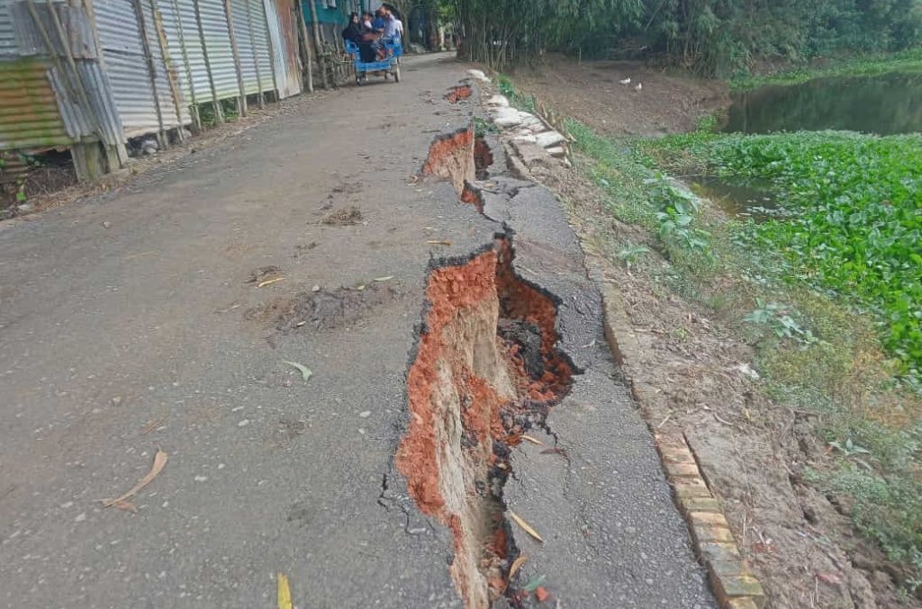 হতাশায় এলাকাবাসী উল্লাপাড়ায় চার মাসেই ধ্বসে গেছে কোটি টাকার সড়ক