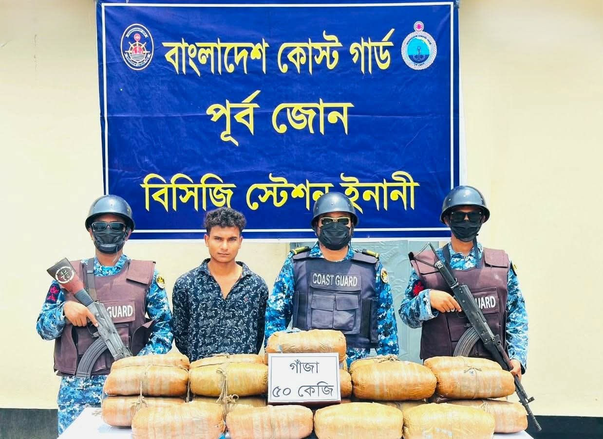 কক্সবাজারের ইনানীতে অভিযান চালিয়ে ৫০ কেজি গাঁজাসহ এক মাদক পাচারকারীকে আটক করেছে বাংলাদেশ কোস্ট গার্ড।