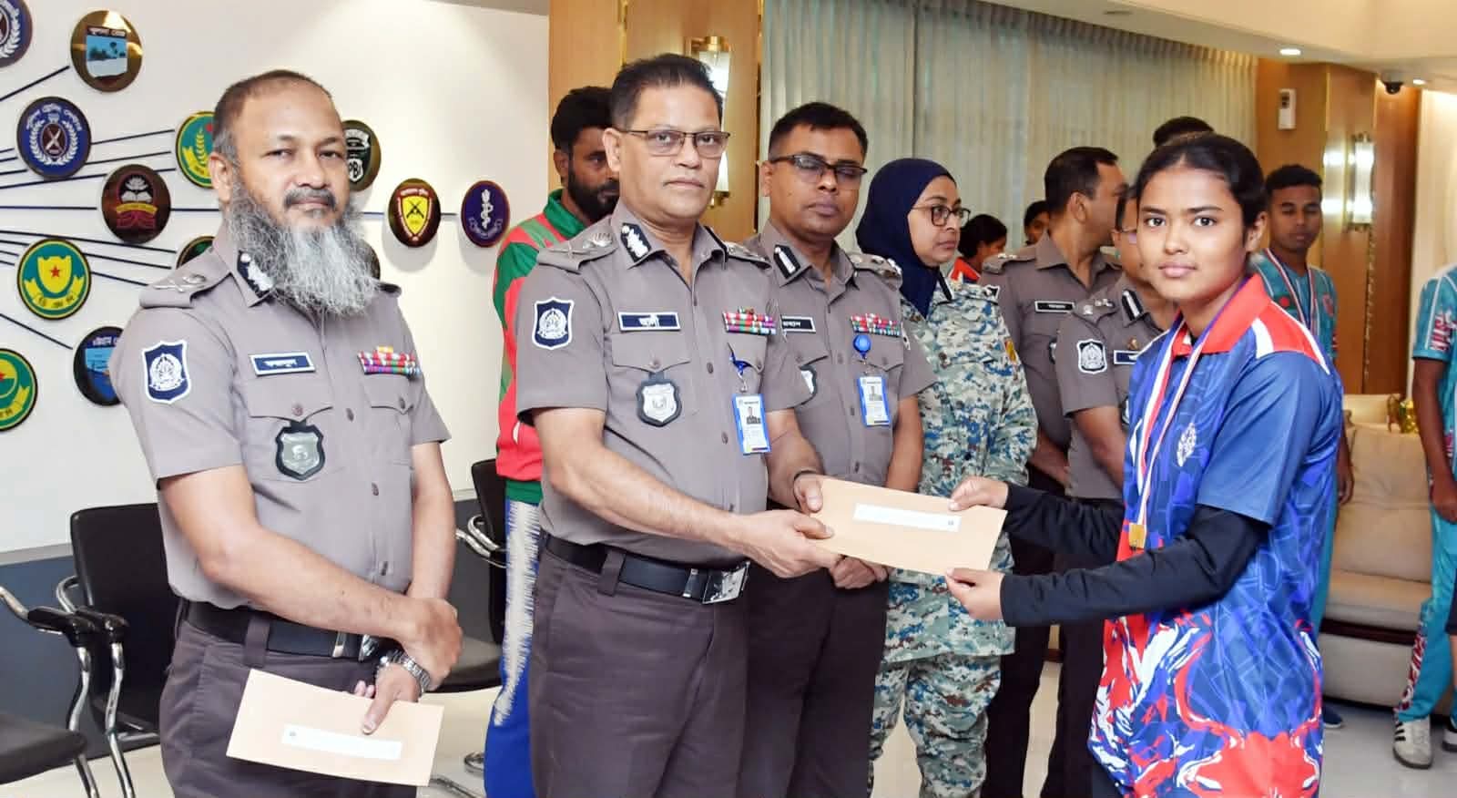 খেলাধুলায় জাতীয় পর্যায়ে বাংলাদেশ পুলিশের ধারাবাহিক সাফল্য বজায় রাখা এবং খেলোয়াড়দের মনোবল বৃদ্ধির লক্ষ্যে বাস্কেটবল ও ফুটভলি নারী-পুরুষ দলের খেলোয়াড়দের আর্থিক পুরস্কার প্রদান করা হয়েছে। বৃহস্পতিবার (৩০ এপ্রিল) পুলিশ হেডকোয়ার্টার্সে ইন্সপেক্টর জেনারেল অব পুলিশ (আইজিপি) মো. আলী হোসেন ফকির এ পুরস্কার প্রদান করেন।