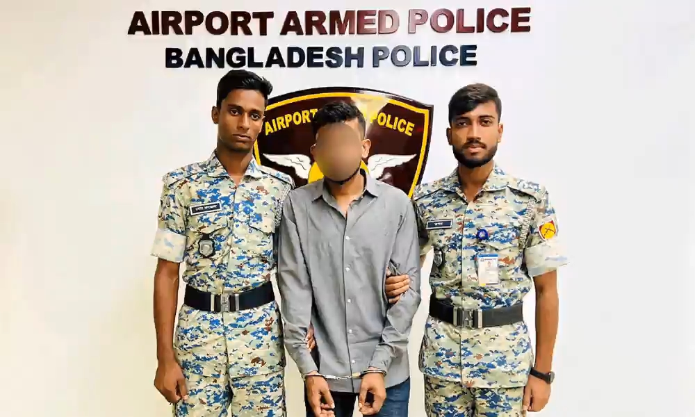 সোমবার (৩ নভেম্বর ) সকালে বিমানবন্দরের ৮ নম্বর হ্যাঙ্গার গেটের পূর্ব পাশের কাস্টমস হাউজ সংলগ্ন এলাকা থেকে তাকে আটক করা হয়।