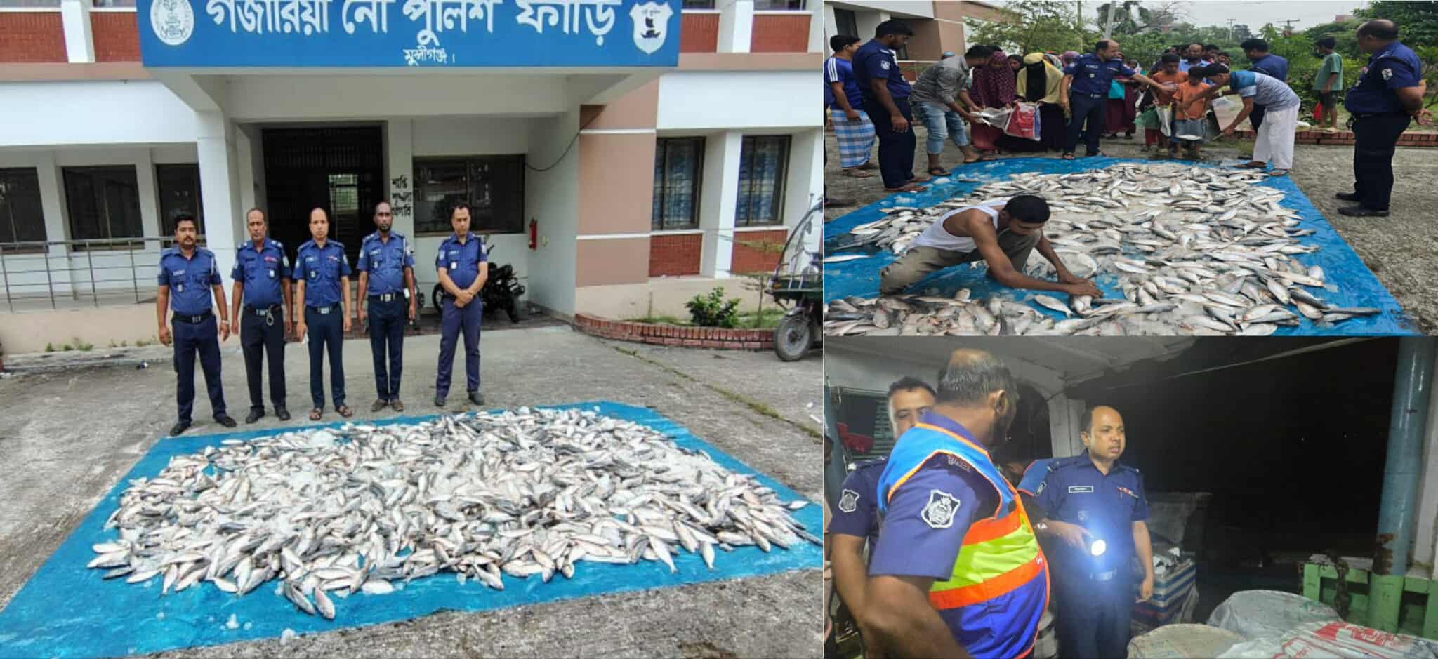 নৌ পুলিশ নারায়ণগঞ্জ অঞ্চলের মুন্সীগঞ্জ জেলার গজারিয়া নৌ পুলিশ ফাঁড়ি কর্তৃপক্ষ স্থানীয় মেঘনা নদীতে রাত্রিকালীন অভিযান পরিচালনা করে প্রায় এক টন জাটকা ইলিশ উদ্ধার করেছে।