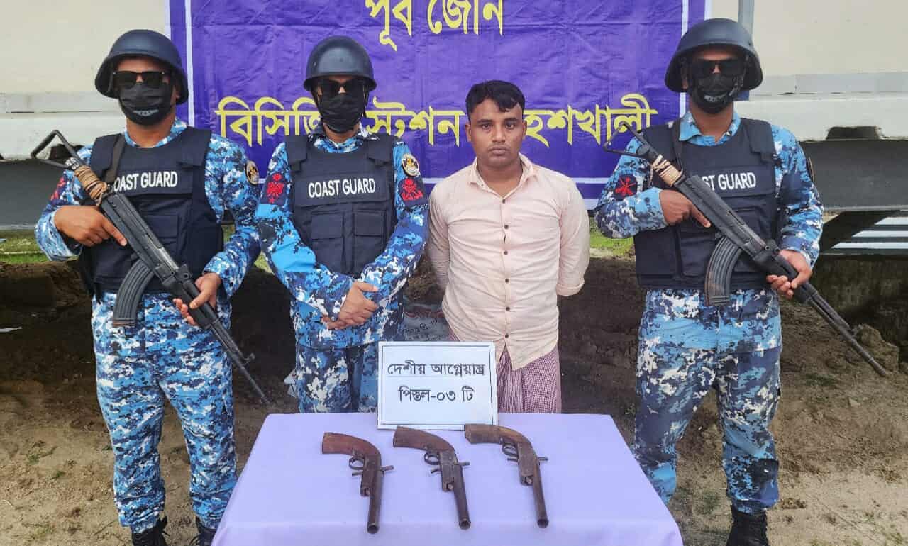 কক্সবাজারের মহেশখালীতে কোস্ট গার্ডের বিশেষ অভিযানে ৩টি দেশীয় আগ্নেয়াস্ত্রসহ এক কুখ্যাত সন্ত্রাসীকে আটক করেছে কোস্ট গার্ড সদস্যরা।