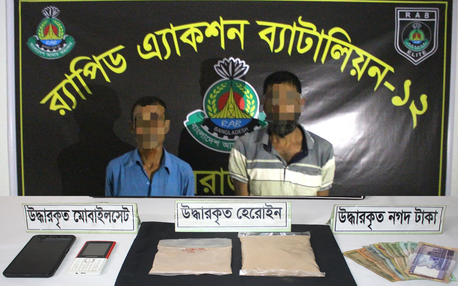 গ্রেফতারকৃতরা হলেন, রাজশাহী জেলার কাশিয়াডাঙ্গা থানার কাঁঠালবাড়ীয়া গ্রামের মৃত আব্দুল আজিজের ছেলে মোঃ রবিউল ইসলাম (৫৫) ও একই জেলার গোদাগাড়ী থানার মাদারিপুর গ্রামের মৃত সমিরুদ্দিন শাহ্র ছেলে বাবুল শাহ্ (৬০)। বৃহস্পতিবার সকালে এক প্রেস বিজ্ঞপ্তিতে বিষয়টি নিশ্চিত করেছেন, র্যাব-১২ কোম্পানি কমান্ডার, অতিরিক্ত পুলিশ সুপার দীপংকর ঘোষ।