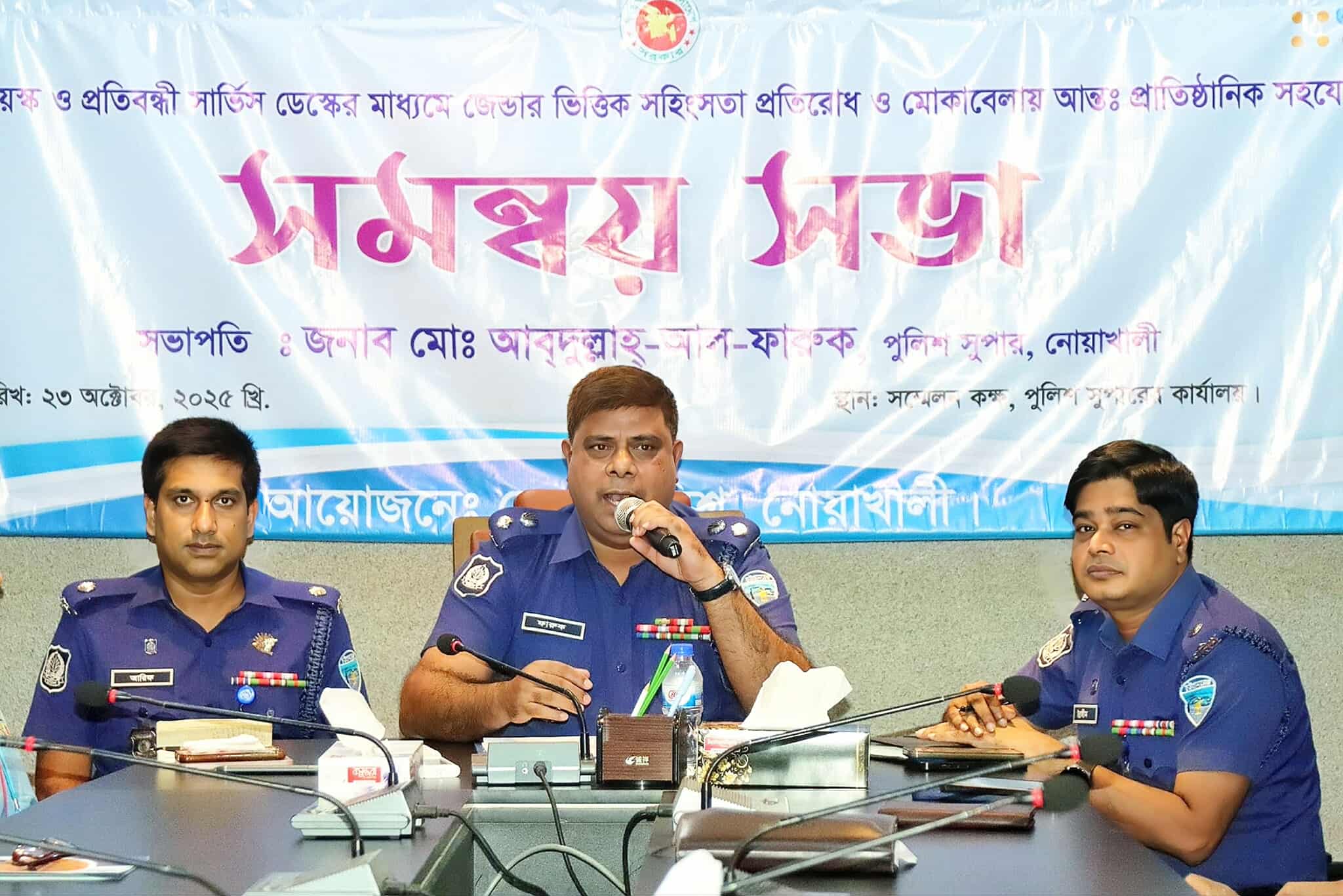 বৃহস্পতিবার(২৩ অক্টোবর) সকাল ১১টায় জেলা পুলিশ নোয়াখালীর আয়োজনে পুলিশ সুপারের কার্যালয়ের সম্মেলন কক্ষে এ সভা অনুষ্ঠিত হয়।
