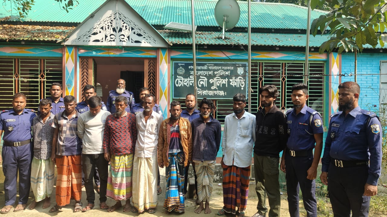 গ্রেফতারকৃতরা হলেন- ঘোড়জান ইউনিয়ন ৫নং ওয়ার্ডের ইউপি সদস্য মানিক সিকদার (৫৫), চৌহালীতে ছাত্র সমন্বয়ক পরিচয়ধারী স্বল্পমুল্যের চালের ডিলার আল আমিন (২৪), নজরুল ইসলাম (৪৫), শহীদুল ইসলাম (৩৫), আবদুল আলীম (৪০) শরীফুল ইসলাম (৩৫), জাহাঙ্গীর হোসেন (৩৫), ইউনুস আলী( ২৬), শহীদুল ইসলাম (৪৫) ফরিদ হোসেন (২৬) তাঁদের সবার বাড়ি উপজেলার ঘোড়জান ইউনিয়নের রেহাই কাউলিয়া গ্রামে।