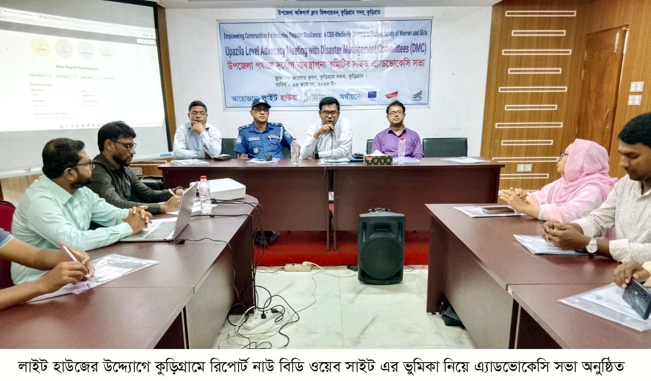 কুড়িগ্রামের সদর উপজেলায় দূর্যোগ ব্যবস্থাপনা কমিটির সহিত রিপোর্ট নাউ বিডি ওয়েব সাইট নিয়ে এ্যাডভোকেসি সভা অনুষ্ঠিত হয়েছে।