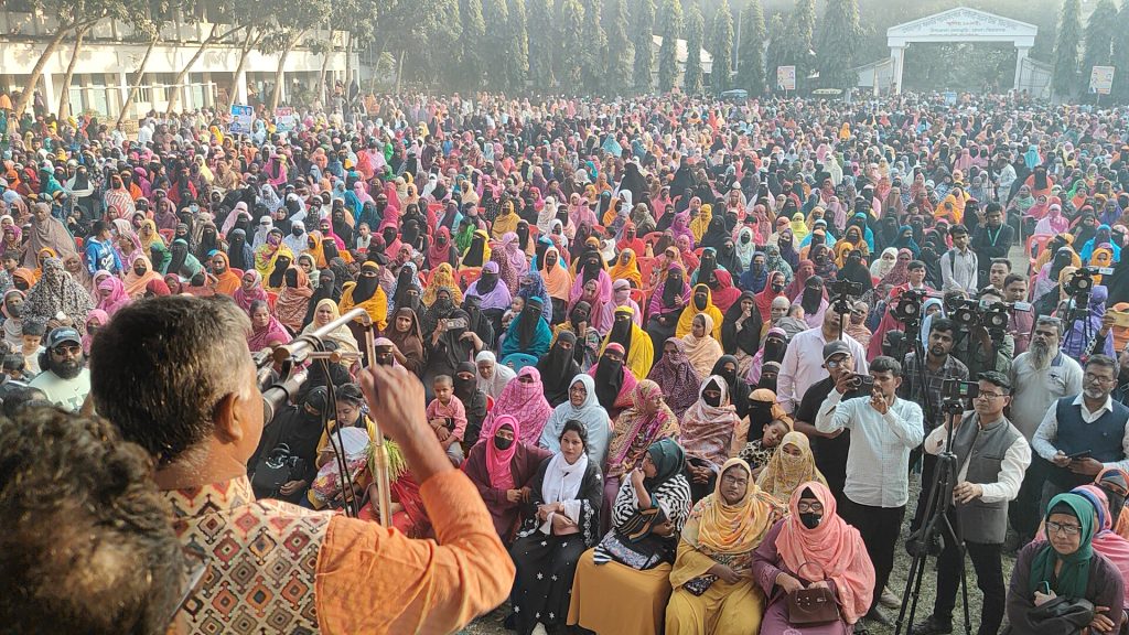 সমাবেশ শেষ করে মহিলাদের নিয়ে বেলকুচির প্রধান প্রধান সড়কে র্যালী করে দলটি।