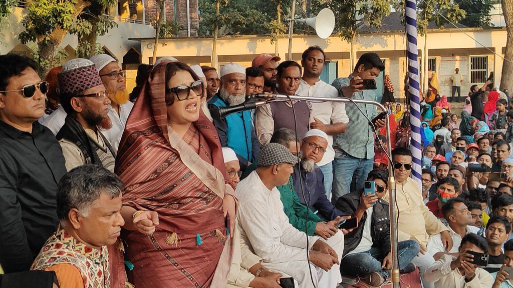 উপজেলা মহিলা দলের আহ্বায়ক ফ্লোরা ইকবালের সভাপতিত্বে বক্তব্য সমাবেশে প্রধান বক্তা হিসেবে বক্তব্য দেন রাজশাহী বিভাগের সহ–সাংগঠনিক সম্পাদক ও সিরাজগঞ্জ-৫ আসনের বিএনপির প্রার্থী আমিরুল ইসলাম খাঁন। তিনি বলেন, ‘দাঁড়িপাল্লায় ভোট দিলে জান্নাত পাওয়া যায় এ কথা বিভ্রান্তিকর। জান্নাত পেতে হলে ধর্মীয় বিধান মেনে চলতে হবে। জামায়াত ইসলামীকে উদ্দেশ করে তিনি বলেন, ‘ইসলামের সঙ্গে জামায়াতের কোনো সম্পর্ক নেই। ১৯৭১ সালে তারা পাকিস্তান সেনাবাহিনীর সহযোগী ছিল। ‘ইসলামের কথা বলে মানুষকে বিভ্রান্ত করার চেষ্টা করেছে জামায়াত।