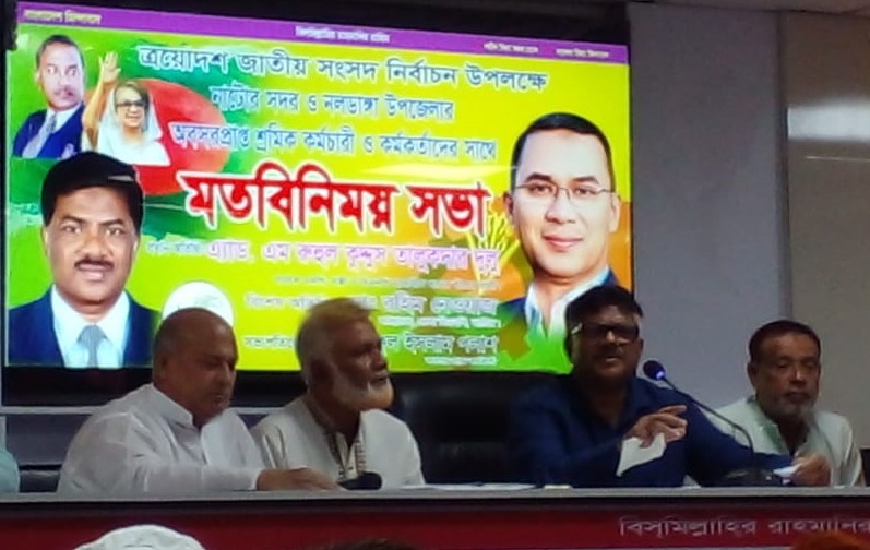 বৃহস্পতিবার সকালে শহরের আলাইপুরে নাটোর বিএনপির কার্যালয়ে নাটোর সদর ও নলডাঙ্গা উপজেলার অবসরপ্রাপ্ত ব্যাংকার ও শ্রমিক-কর্মচারীদের নিয়ে আয়োজিত নির্বাচনী সভায় প্রধান অতিথির বক্তব্যে দুলু এসব কথা বলেন। স্থানীয় বিএনপি নেতা সাইফুল ইসলাম পলাশের সভাপতিত্বে সভায় আরো বক্তব্য রাখেন, নাটোর জেলা বিএনপির আহবায়ক রহিম নেওয়াজ, যুগ্ম সম্পাদক সাইফুল ইসলাম আফতাব, মোস্তাফিজুর রহমান শাহিন, সদস্য শহিদুল ইসলাম বাচ্চু, নাটোর পৌরসভার সাবেক মেয়র কাজী শাহ আলম, সাবেক যুগ্ম আহবায়ক ফরহাদ আলী দেওয়ান শাহিন, জেলা যুবদল সভাপতি এ হাই তালুকদার ডালিম, জেলা শ্রমিক দলের সভাপতি আবু রায়হান ভুলু, শ্রমিক নেতা আব্দুর রশিদ সরকার, সাবেক সিবিএ নেতা হাবিবুল ইসলাম হেলাল এবং ব্যাংকার খোরশেদ আলম ও আবুল কাশেম প্রমুখ।