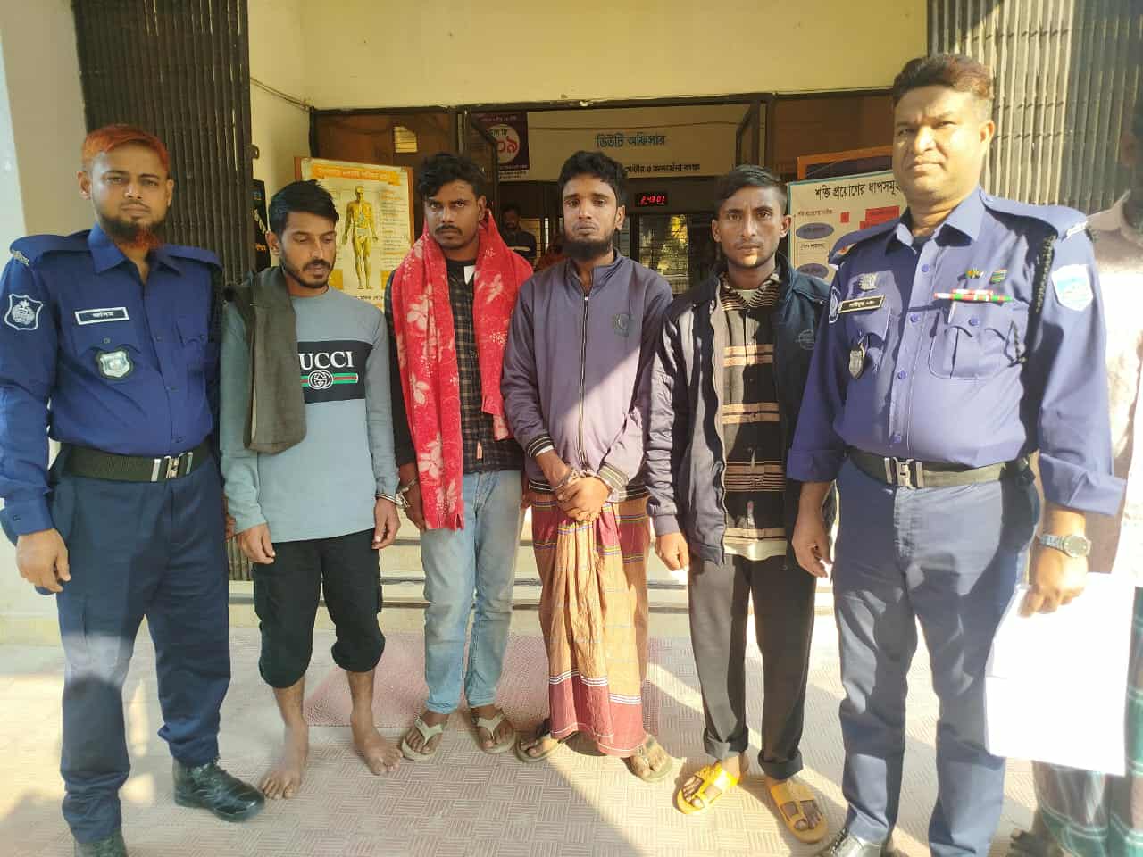 আটককৃতরা হলেন, সলঙ্গা থানার চড়িয়া শিকার মধ্যপাড়ার দেলবার হোসেনের ছেল বাকিরুল ইসলাম রাকিব (৩২), চরিয়া কালিবাড়ি গ্রামের আব্দুর রহমানের ছেলে রন্জিত হোসেন (২৩), চড়িয়া শিকার দক্ষিণপাড়া গ্রামের কাদের আলী মন্ডলের ছেলে আব্দুর রহমান (২৭) ও দিয়ারপাড়া গোজার কাদের মন্ডলের ছেলে আতাব উদ্দিনের মোঃ আলাউদ্দিন (২৫)।
