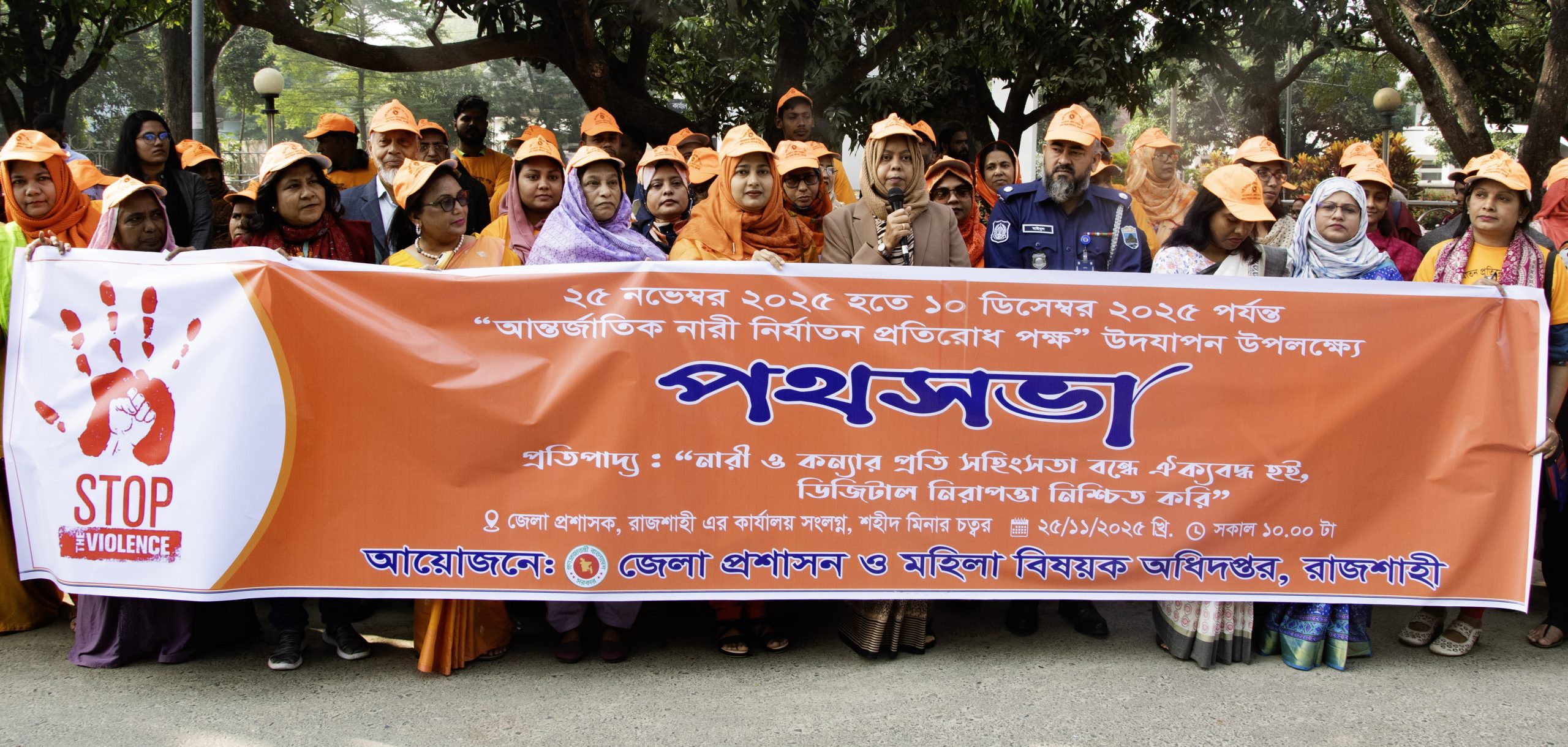 নারী ও কন্যার প্রতি সহিংসতা বন্ধে ঐক্যবদ্ধ হই, ডিজিটাল নিরাপত্তা নিশ্চিত করি, প্রতিপাদ্যকে সামনে রেখে ১৫ দিনব্যাপী আন্তর্জাতিক নারী নির্যাতন প্রতিরোধ পক্ষের উদ্বোধন করেন রাজশাহী জেলা প্রশাসক আফিয়া আখতার। পথসভা আনুষ্ঠানিকভাবে শুরু হয়ে আগামী ১০ ডিসেম্বর পর্যন্ত চলবে।