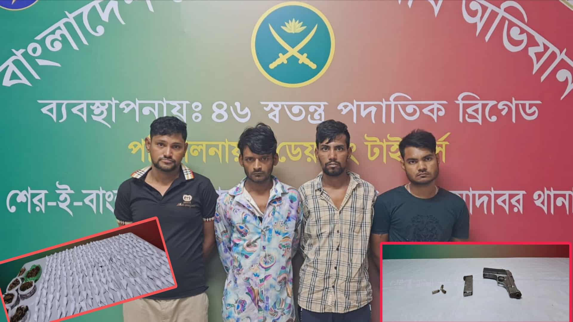 রাজধানীর মোহাম্মদপুরের জেনেভা ক্যাম্পে সেনাবাহিনী ও র্যাব-২ এর যৌথ অভিযানে একটি বিদেশি পিস্তল ও মাদকসহ চারজনকে গ্রেফতার করা হয়েছে।