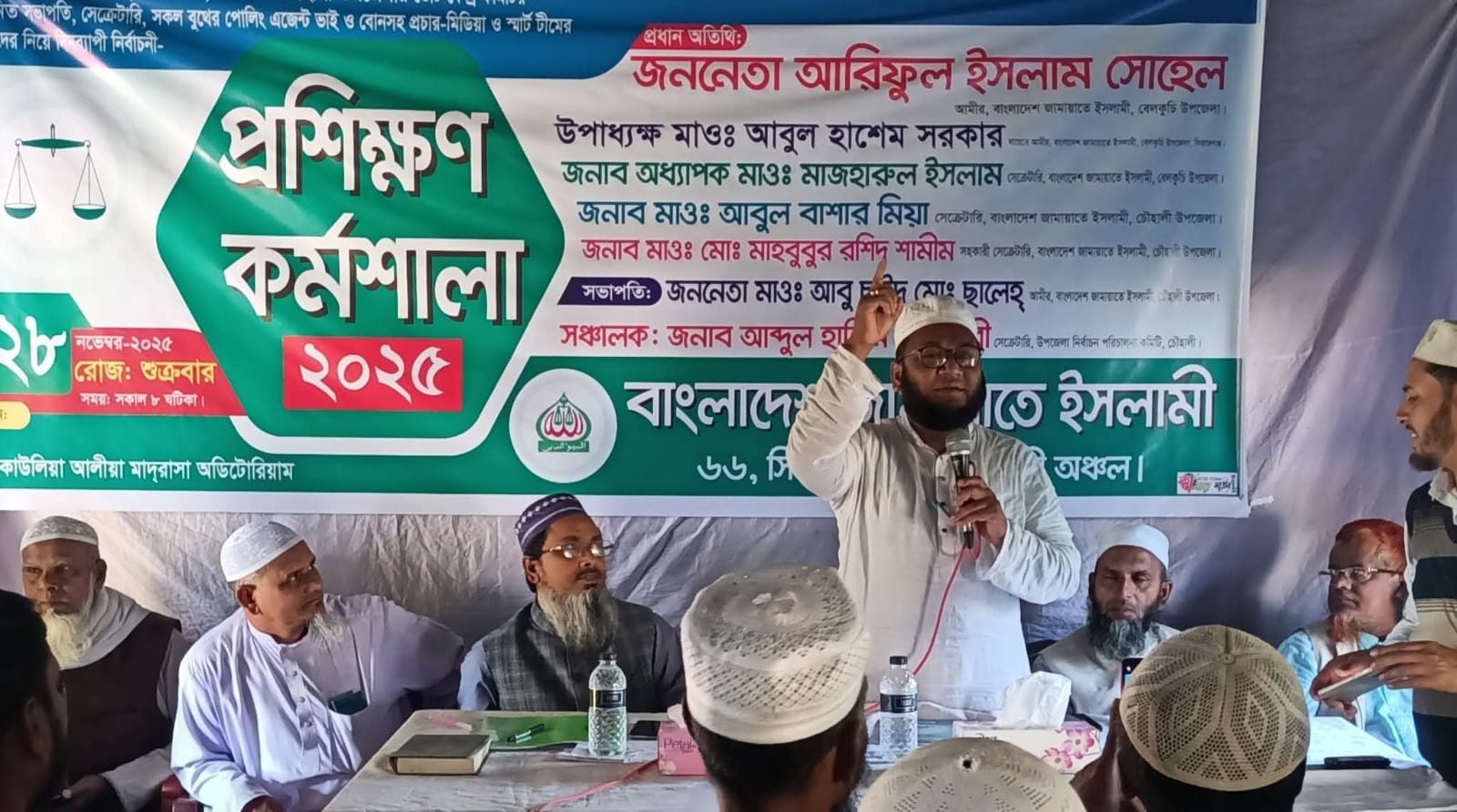 চৌহালী উপজেলা আমীর মাওঃ আবু ছাঈদ মোঃ ছালেহ্ এর সভাপতিত্বে অনুষ্ঠিত প্রশিক্ষণ কর্মশালায় প্রশিক্ষক ও বিশেষ অতিথি হিসেবে বক্তব্য রাখেন বেলকুচি উপজেলা নায়েবে আমীর উপাধ্যক্ষ মাওঃ আবুল হাশেম সরকার, সেক্রেটারি অধ্যাপক মাওঃ মাজহারুল ইসলাম, চৌহালী উপজেলা সেক্রেটারি মাওঃ আবুল বাশার মিয়া,বেলকুচি উপজেলা বাইতুলমাল সেক্রেটারি মাওঃ আক্কাস আলী, সিরাজগঞ্জ-৫ আসন কমিটির ডিজিটাল ক্যাম্পিইন পরিচালক ডাঃ রুহুল আমীন,জামায়াত নেতা আব্দুল হালিম আনছারী,রবিউল ইসলাম ও ছাত্রনেতা তুষার প্রমূখ।
