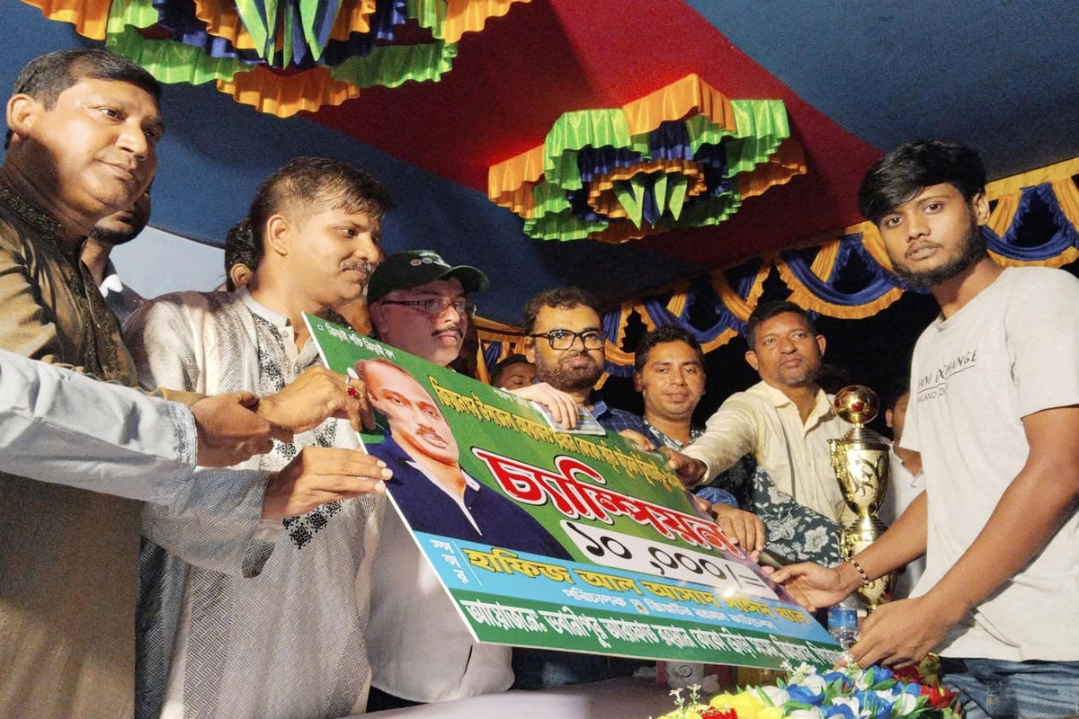 খেলা শেষে বিজয়ী দলের হাতে ট্রফি তুলে দেন স্থানীয় বিশিষ্ট ব্যক্তিবর্গ ও আয়োজক কমিটির সদস্যরা।
