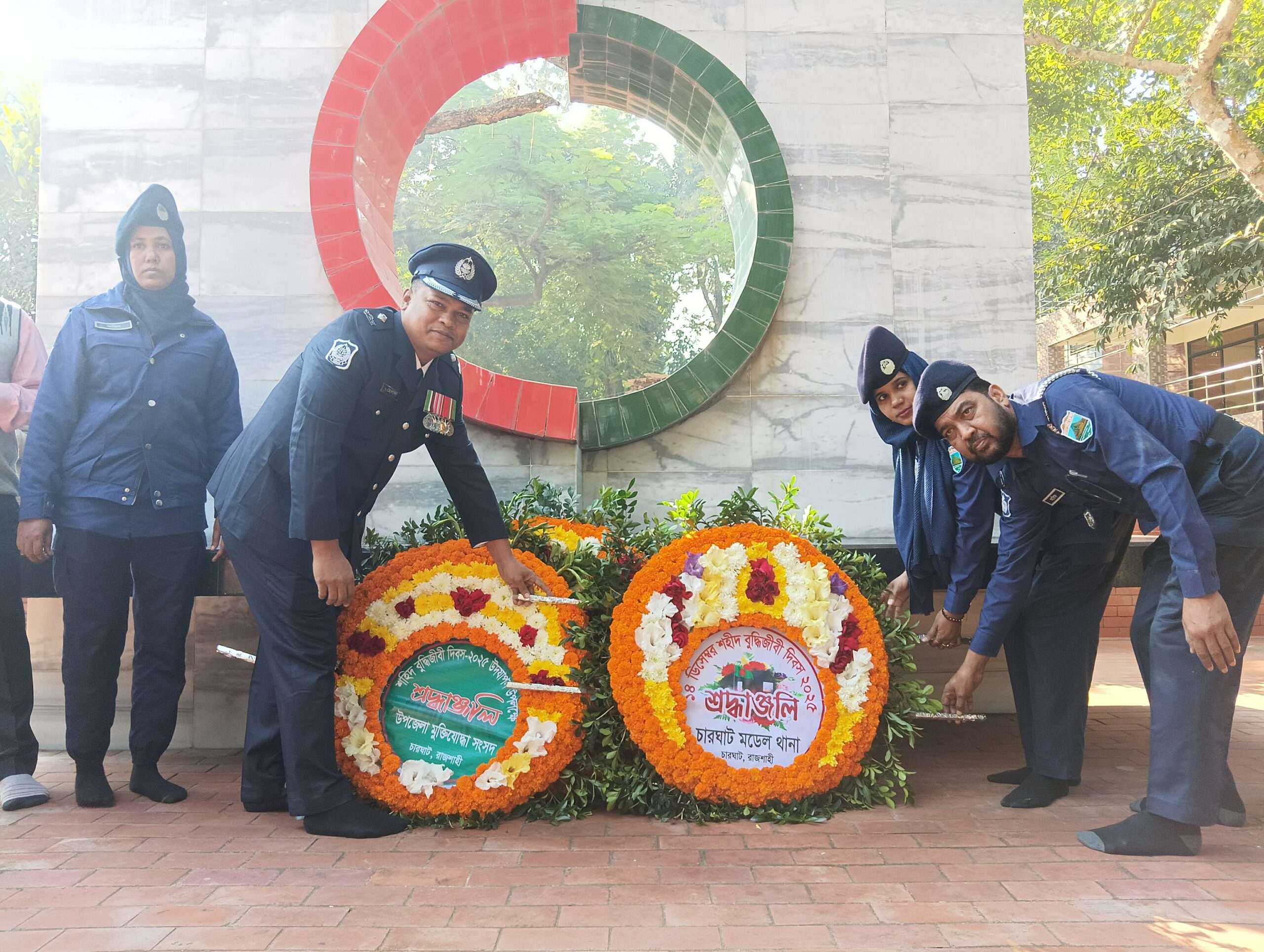 এর আগে দিবসটির কর্মসূচি মোতাবেক সকাল ১০ টায় মুক্তিযোদ্ধা স্মৃতিস্তম্ভে ফুল দিয়ে শ্রদ্ধা নিবেদন করেন, উপজেলা প্রশাসক ও পৌর প্রশাসক জান্নাতুল ফেরদৌস, চারঘাট মডেল থানার (ওসি) হেলাল উদ্দিন ফারুকী সহ বিভিন্ন সরকারি বেসরকারি কর্মকর্তাগন।