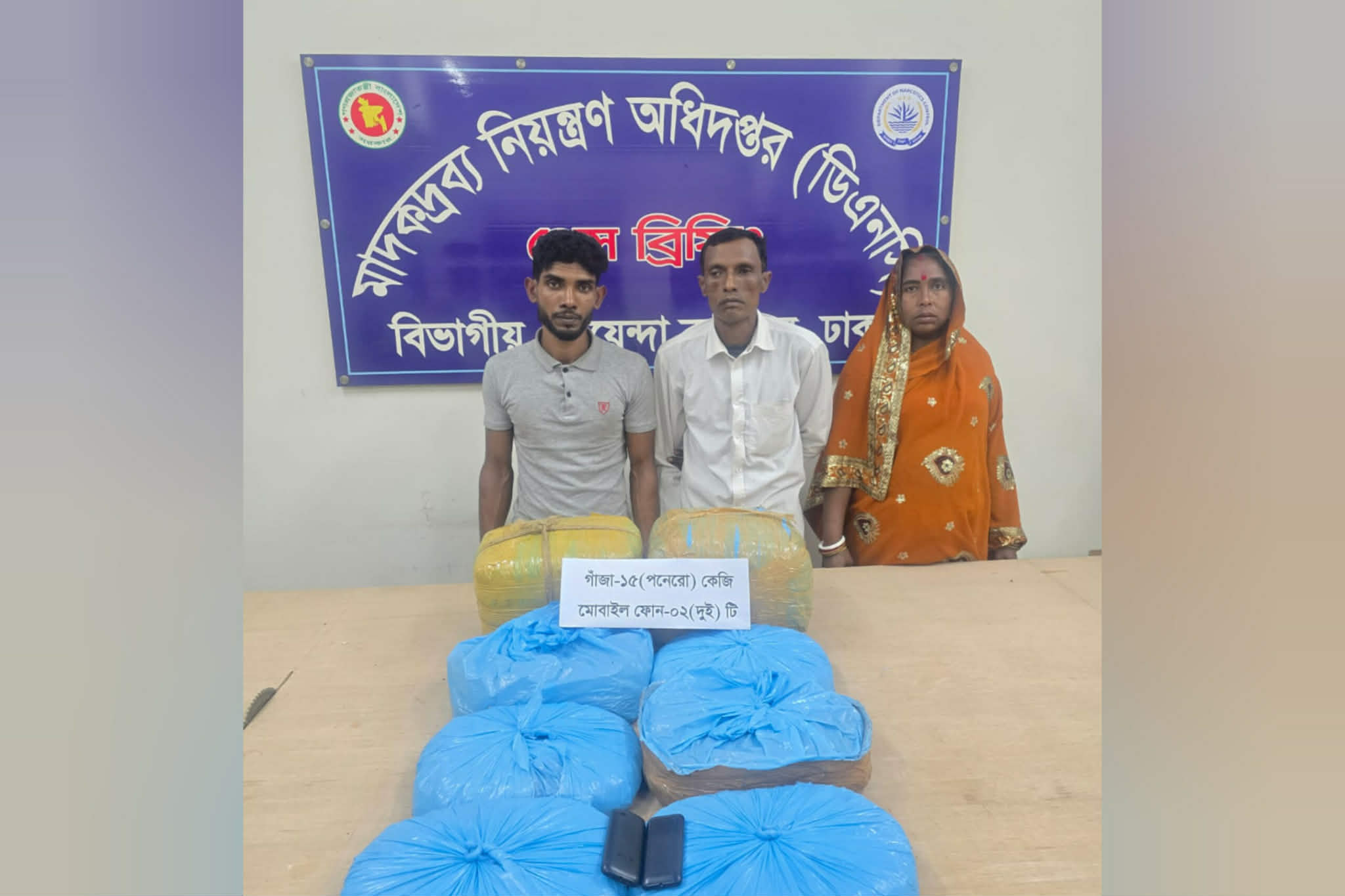 ৬ কেজি ও ৯ কেজি মোট ১৫ কেজি গাঁজা এবং দুটি মোবাইল ফোন উদ্ধার করা হয়।