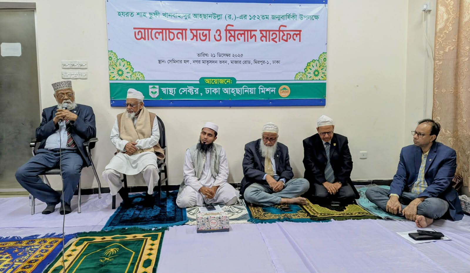 উপমহাদেশের প্রখ্যাত শিক্ষাবিদ, সমাজসংস্কারক ও সুফি চিন্তাবিদ হজরত খানবাহাদুর আহ্ছানউল্লা (র.)-এঁর ১৫২তম জন্মবার্ষিকী উপলক্ষে আলোচনাসভা ও মিলাদ মাহফিল অনুষ্ঠিত হয়েছে। আজ রবিবার (২১ ডিসেম্বর) বিকাল ৪টায় ঢাকা আহ্ছানিয়া মিশন স্বাস্থ্য সেক্টরের উদ্যোগে মিরপুর-১ মাজার রোডে নগর মাতৃসদনের সেমিনার হলে এই অনুষ্ঠান অনুষ্ঠিত হয়।