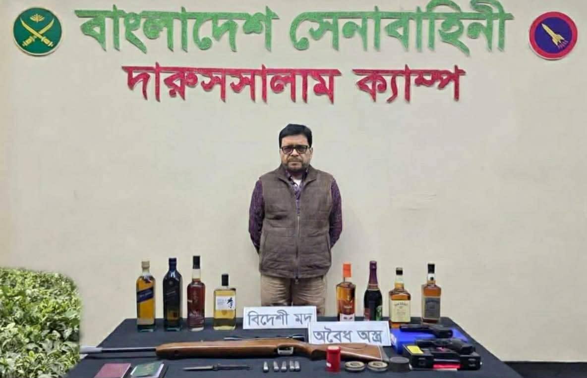 সেনাবাহিনীর একটি সূত্রে জানা গেছে, শনিবার ভোরে গোয়েন্দা তথ্যের ভিত্তিতে দক্ষিণ কল্যাণপুরের ইস্টার্ন হাউজিংয়ে যৌথ অভিযান চালায় সেনাবাহিনীর একটি দল। অভিযানে আটক নাসির উদ্দিনের কাছ থেকে একটি রাইফেল, দুটি বিদেশি পিস্তল এবং বিদেশি মদসহ বিভিন্ন সরঞ্জামাদি জব্দ করা হয়।