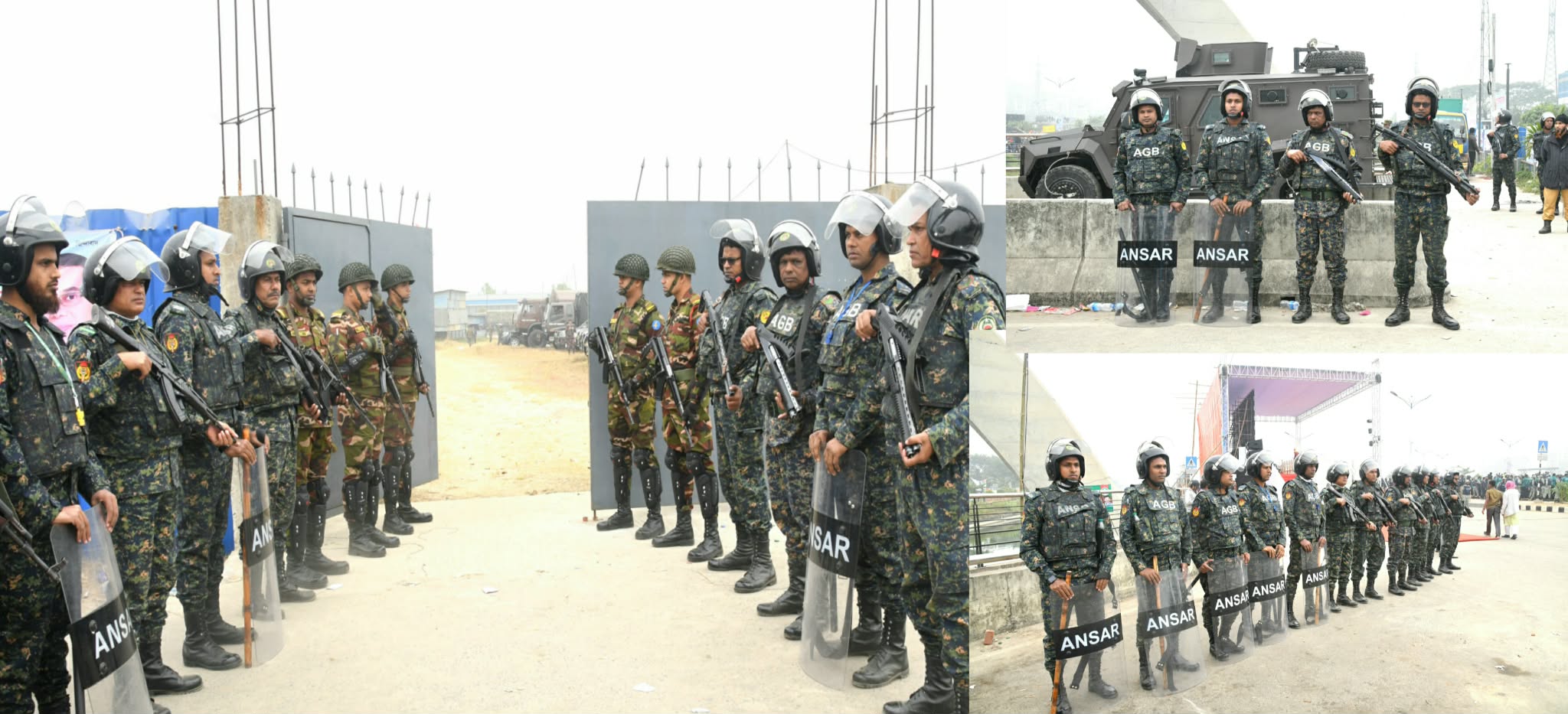 আশিকউজ্জামান বলেন,এ উপলক্ষে সার্বিক নিরাপত্তা নিশ্চিত করতে বাংলাদেশ আনসার ও গ্রাম প্রতিরক্ষা বাহিনী (আনসার-ভিডিপি) সুসংগঠিত ও পরিকল্পিত নিরাপত্তা ব্যবস্থা গ্রহণ করে। জনশৃঙ্খলা বজায় রাখা, যাত্রী চলাচল স্বাভাবিক রাখা এবং যেকোনো অনাকাঙ্ক্ষিত পরিস্থিতি মোকাবিলায় বাহিনীর সদস্যরা সার্বক্ষণিক দায়িত্ব পালন করেন।