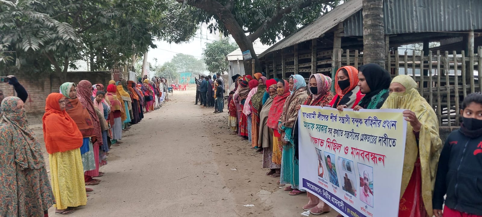 শাহজাদপুরে সংঘর্ষে গুলিবর্ষণ, আসামী গ্রেপ্তারের দাবীতে নারীদের ঝাড়ু– মিছিল