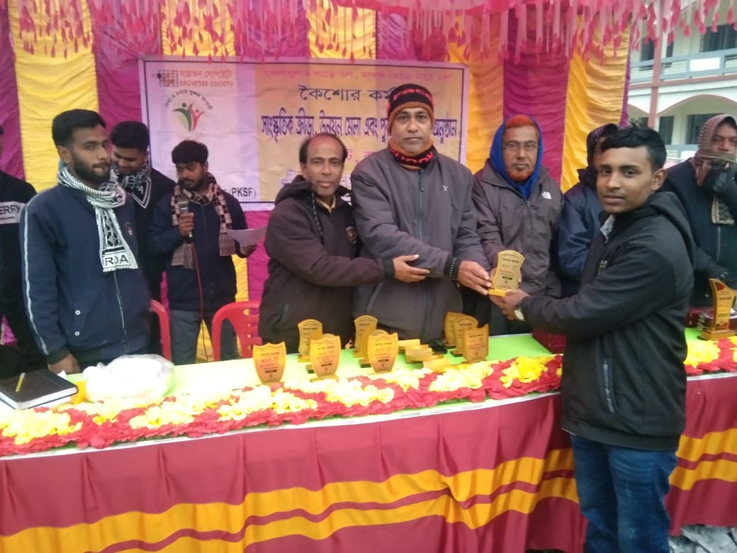 অনুষ্ঠান শেষে কৈশোর ক্লাবের বিজয়ী ছাত্র/ছাত্রীদের মাঝে বিশেষ পুরস্কার বিতরন ও বিশেষ অতিথিদের ও চারঘাট প্রেসক্লাবের সভাপতি নজরুল ইসলাম বাচ্চুকে সংবাদ প্রতিবেদন প্রকাশের অবদান রাখার জন্য সচেতন সোসাইটি সম্মানা ক্রেস প্রদান করা হয়।