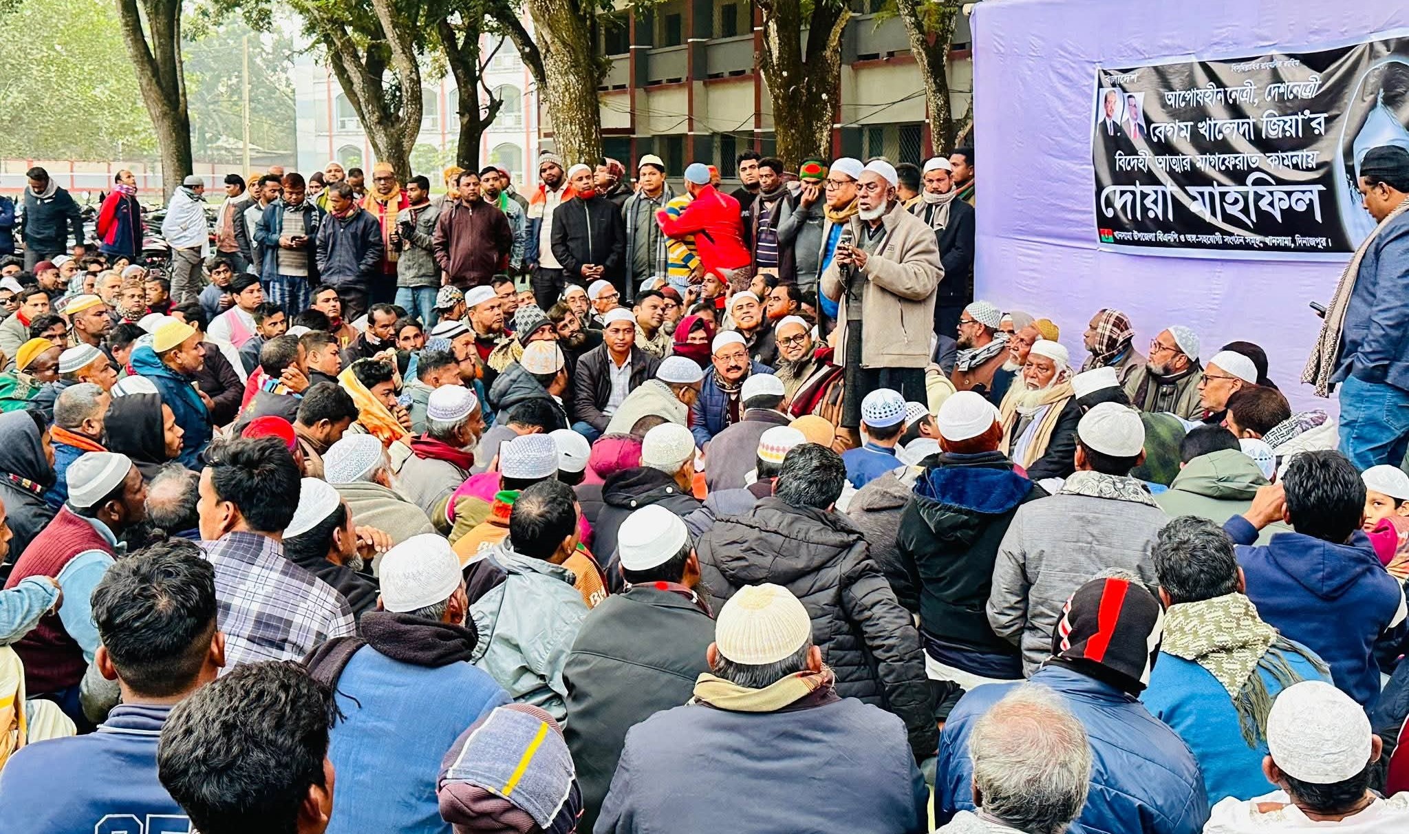 সদ্য প্রয়াত বিএনপির চেয়ারপারসন ও সাবেক প্রধানমন্ত্রী দেশনেত্রী বেগম খালেদা জিয়ার বিদেহী আত্মার মাগফিরাত কামনায় দিনাজপুরের খানসামায় মিলাদ ও দোয়া মাহফিল অনুষ্ঠিত হয়েছে।