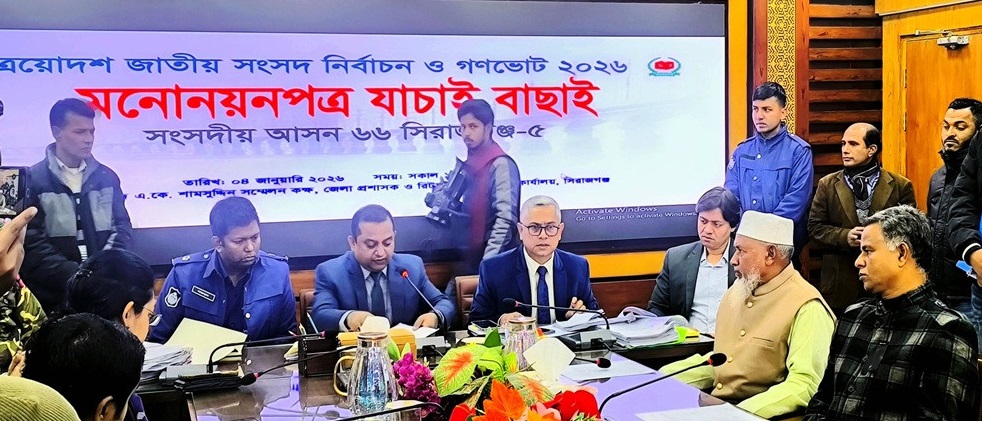 সিরাজগঞ্জ-৪, ৫ ও ৬ আসনের মনোনয়নপত্র যাচাই বাচাই শেষে ৭ প্রার্থীর মনোনয়নপত্র বাতিল করা হয়েছে। রবিবার জেলা প্রশাসকের সন্মেলন কক্ষে মনোনয়নপত্র যাচাই বাচাই শেষে রির্টানিং অফিসার ও জেলা প্রশাসক আমিনুল ইসলাম এসব প্রার্থীর মনোনয়নপত্র বাতিল বলে ঘোষণা করেন।